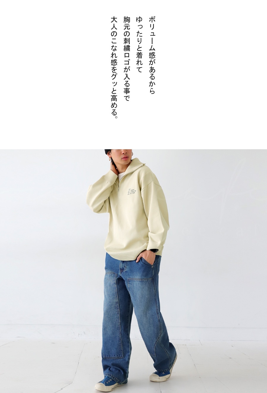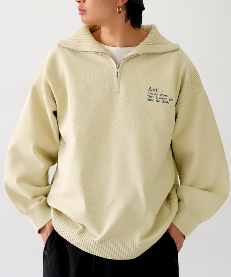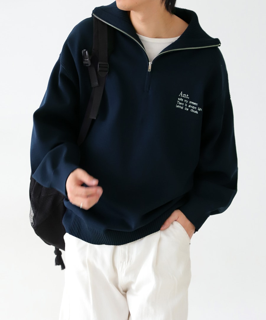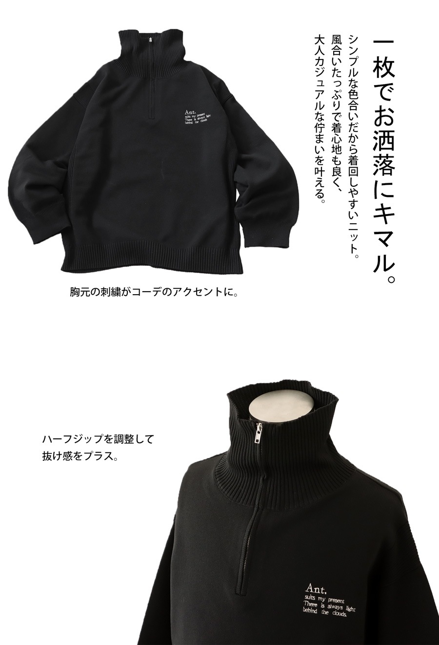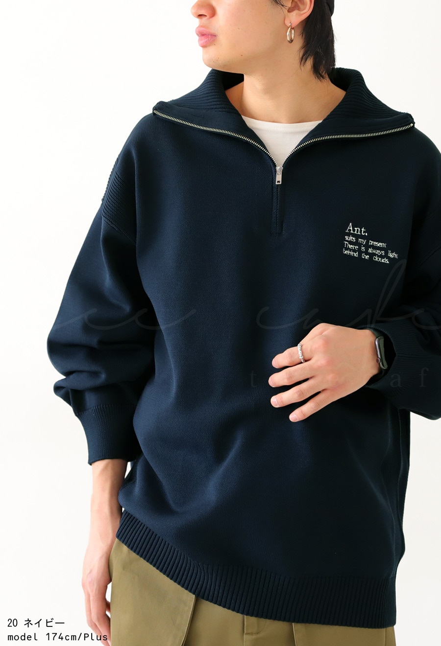 【検索ワード】スポンジニット ニット メンズ トップス 長袖 ハーフジップ ファスナー ポイント刺繍 ロゴ ワンポイント ドロップショルダー リブ ゆったり サイズ展開 Regular Plus シンプル きれいめ 高級感 軽い 軽量 大きめ 大きいサイズ ユニセックス 男性 男 かっこいい カッコイイ カジュアル antiqua treecafe アンティカ ツリーカフェ メンズファッション トレンド コーディネート 通販 ブランド 春 秋 冬 あんてぃか