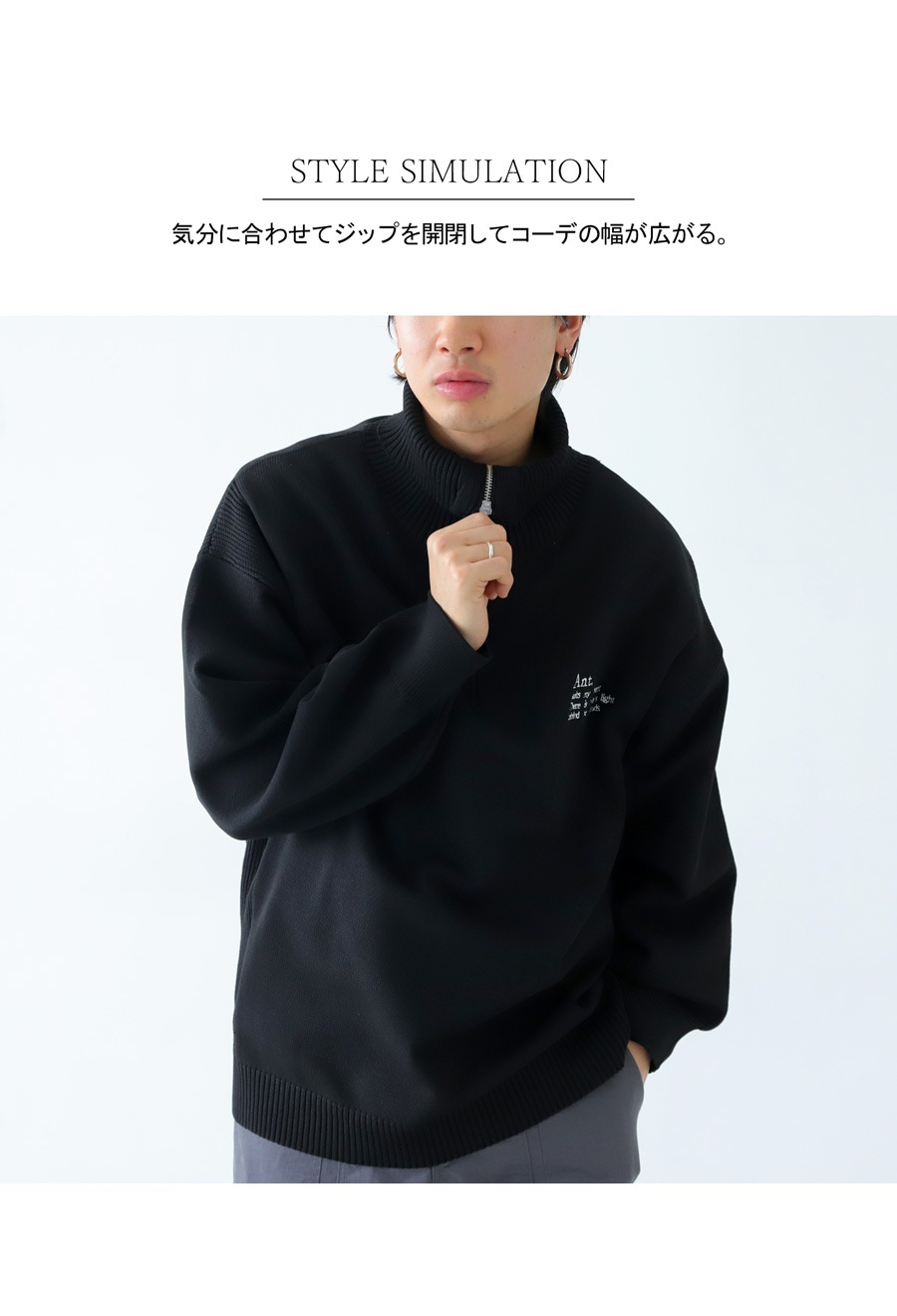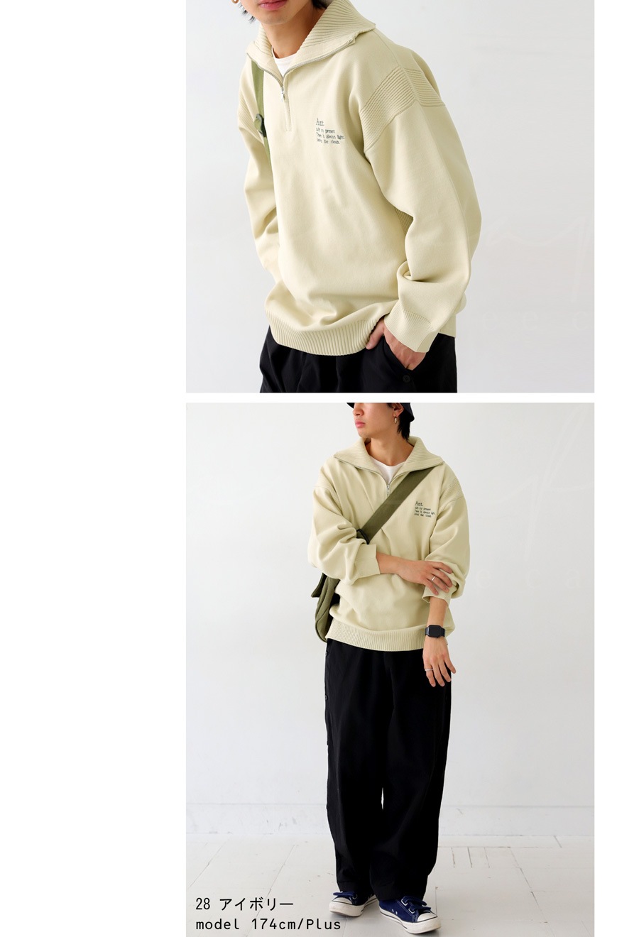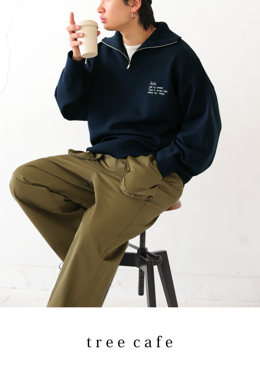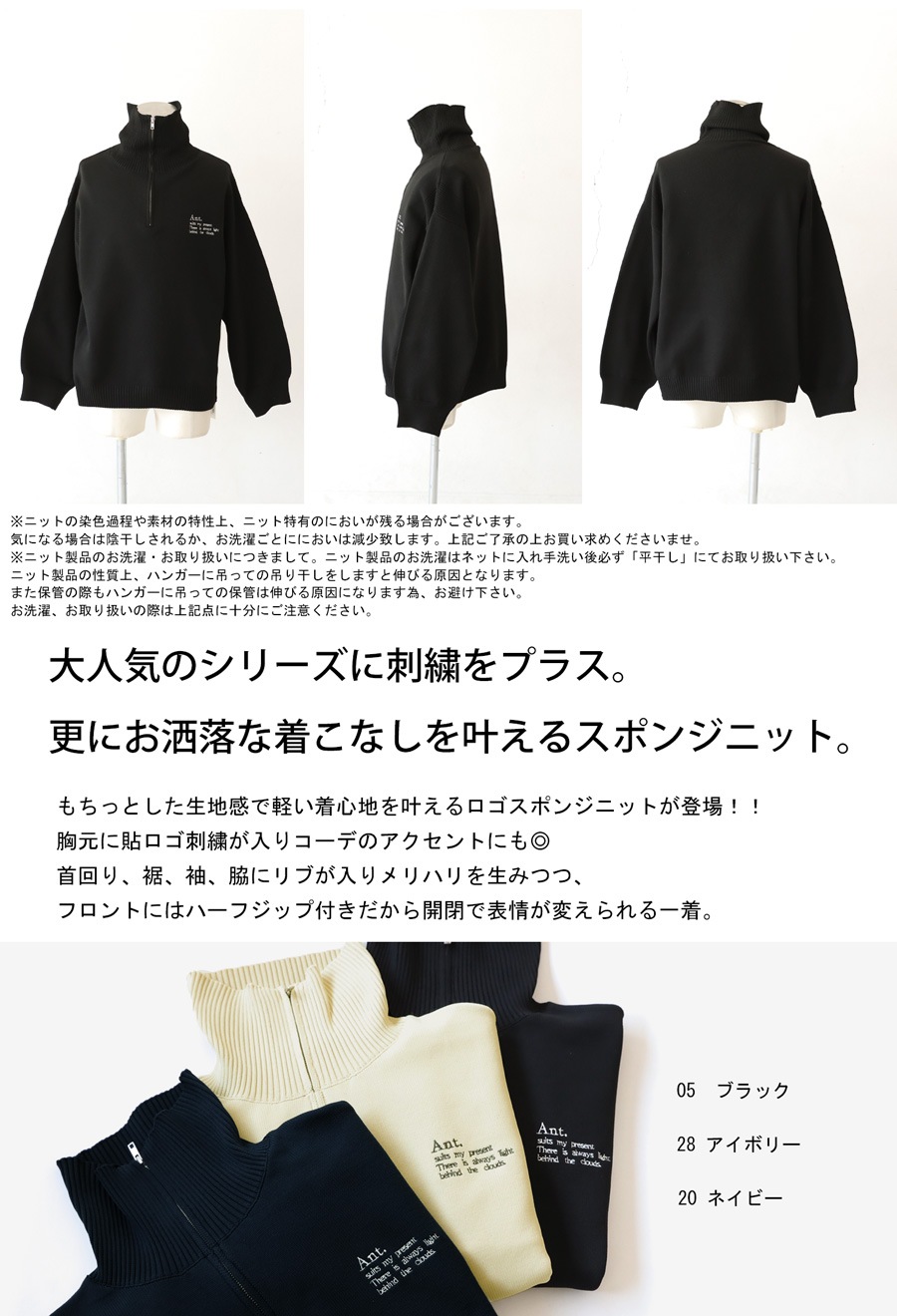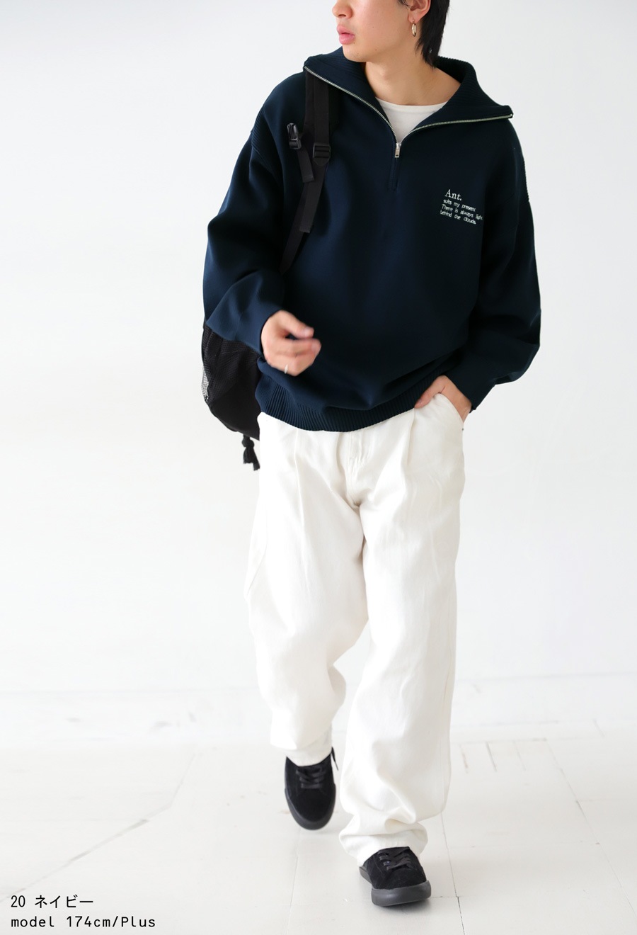 【検索ワード】スポンジニット ニット メンズ トップス 長袖 ハーフジップ ファスナー ポイント刺繍 ロゴ ワンポイント ドロップショルダー リブ ゆったり サイズ展開 Regular Plus シンプル きれいめ 高級感 軽い 軽量 大きめ 大きいサイズ ユニセックス 男性 男 かっこいい カッコイイ カジュアル antiqua treecafe アンティカ ツリーカフェ メンズファッション トレンド コーディネート 通販 ブランド 春 秋 冬 あんてぃか
