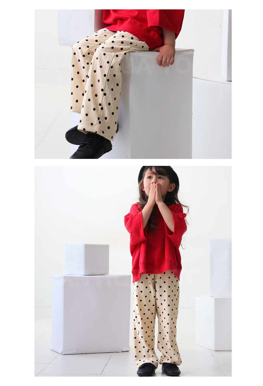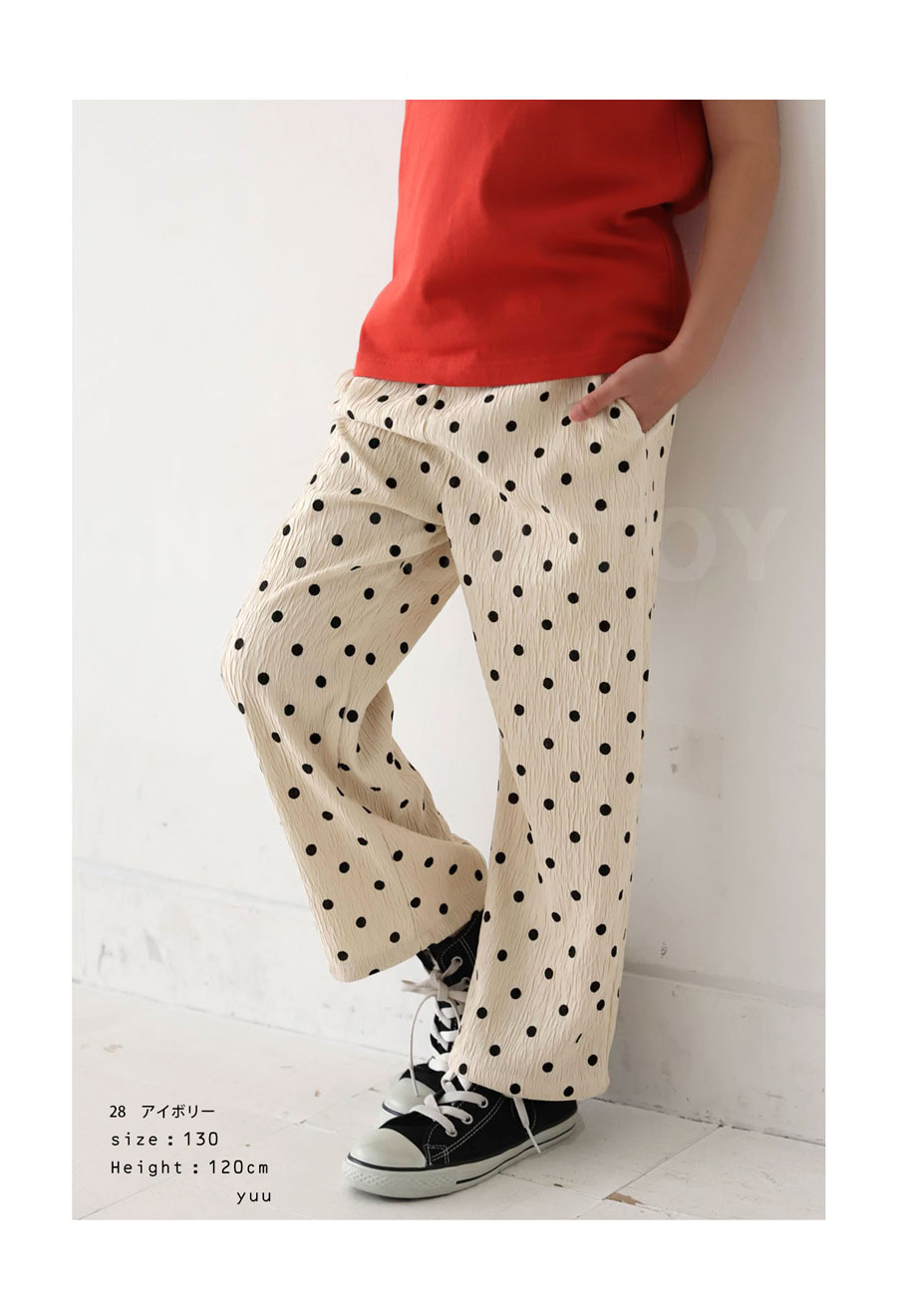 【検索ワード】ドット柄パンツ パンツ ボトムス ロング ドット柄 柄 柄パンツ 水玉 ドットパンツ ゆったり 長ズボン ロングパンツ 柄ボトム ウエストゴム 全ゴム 内紐 イージーパンツ シボ感 リラックス ラフ 低学年 高学年 120cm 130cm 双子コーデ プレゼント お祝い 出産祝い 春 夏 秋 冬 オールシーズン キッズ 子供服 男の子 女の子 女児 男児 通園 通学 お出かけ お洒落 アンティカ antiqua おしゃれ 可愛い かっこいい