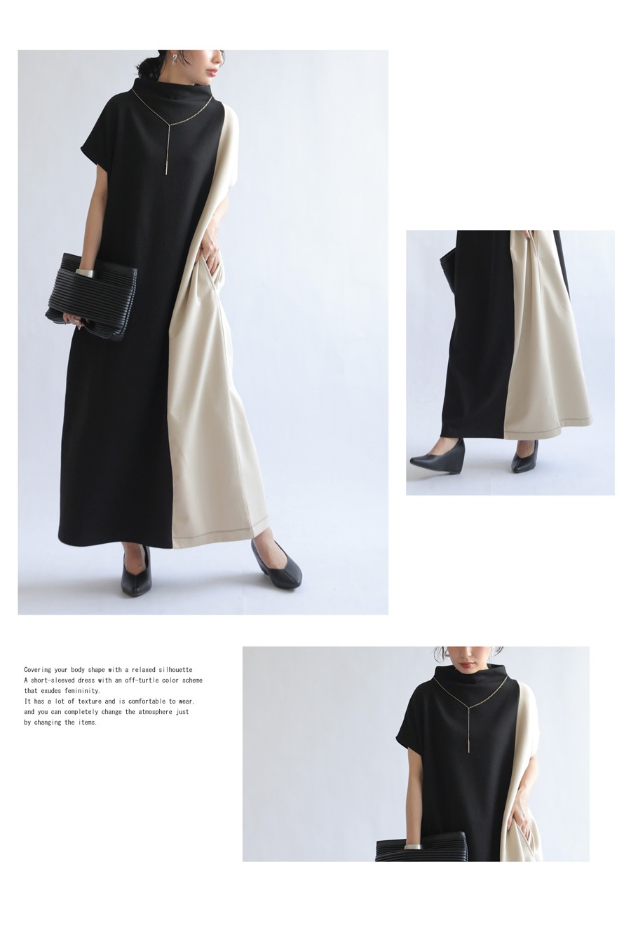 【検索ワード】ワンピース レディース ロング 半袖 無地 配色 ゆったり シンプル きれいめ 上品 高級感 ロングワンピ ワンピ バイカラー オフタートル ボリューム 伸縮 着痩せ 体型カバー 大きいサイズ 楽ちん ラフ antiqua アンティカ 大人 おしゃれ 10代 20代 30代 40代 50代 60代 春 夏 お洒落 カジュアル かわいい かっこいい あんてぃか