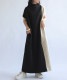 ワンピース レディース ロング 半袖 無地 配色 送料無料・再再販。メール便不可