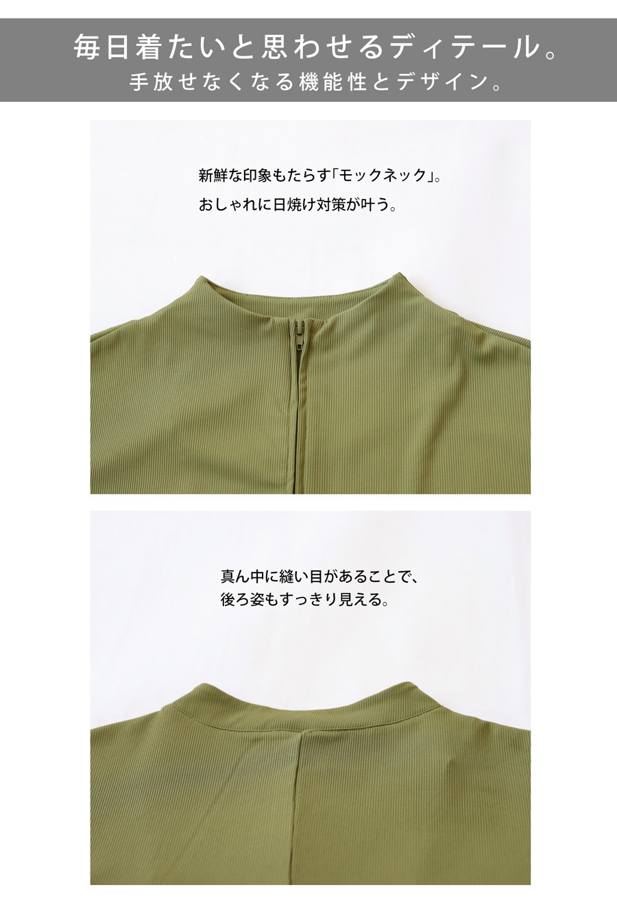 ・低めのスタンドで快適なモックネック。