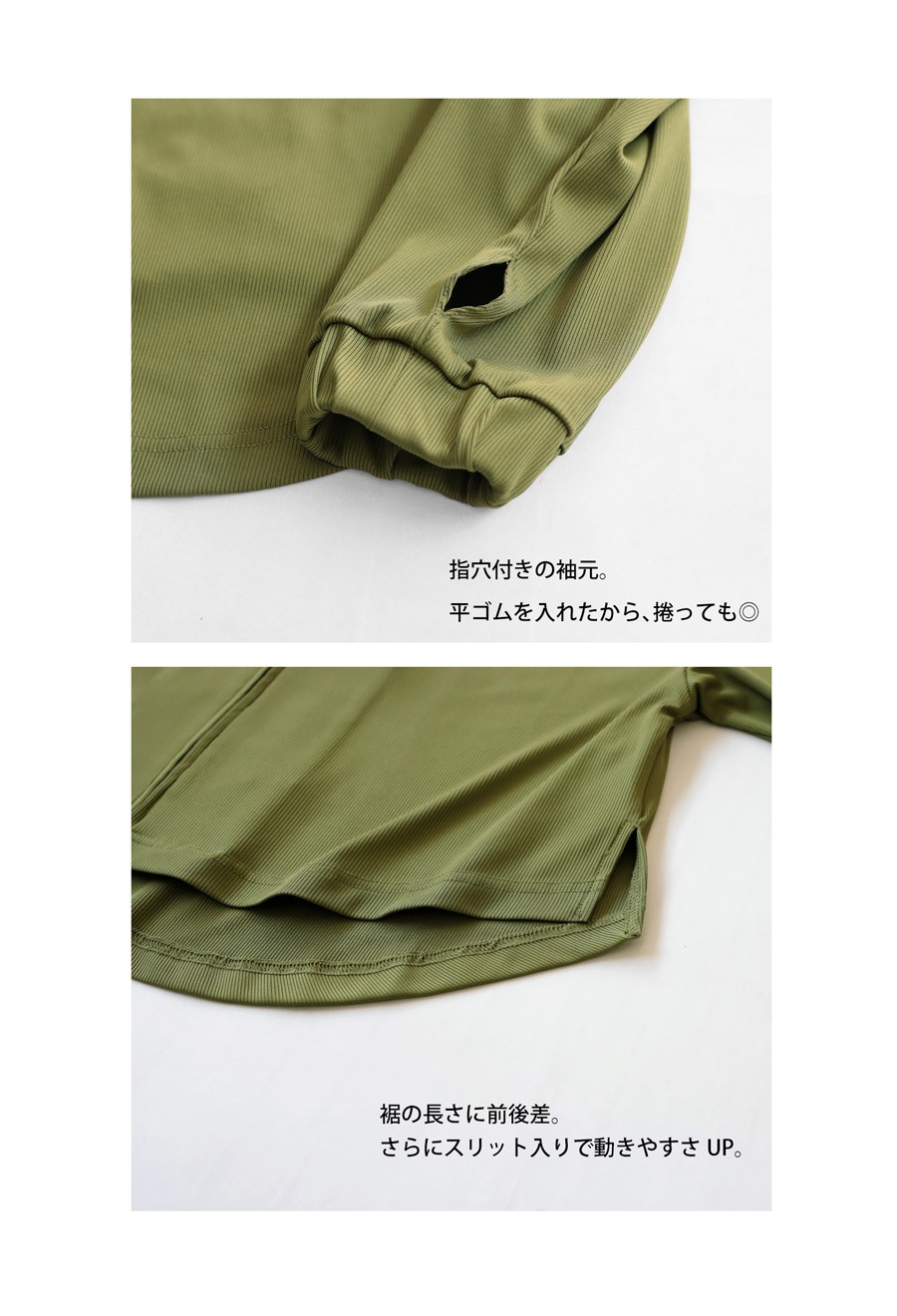・腕まくりしやすい平ゴム仕様。