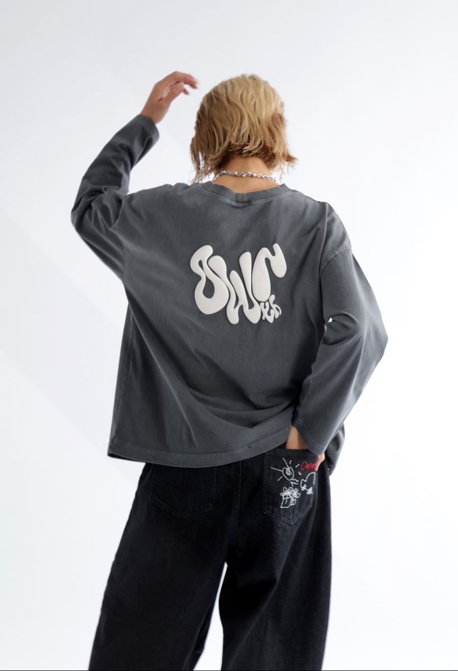 後ろポケットには、デザイナー書き下ろしの刺繍イラストをプラス。