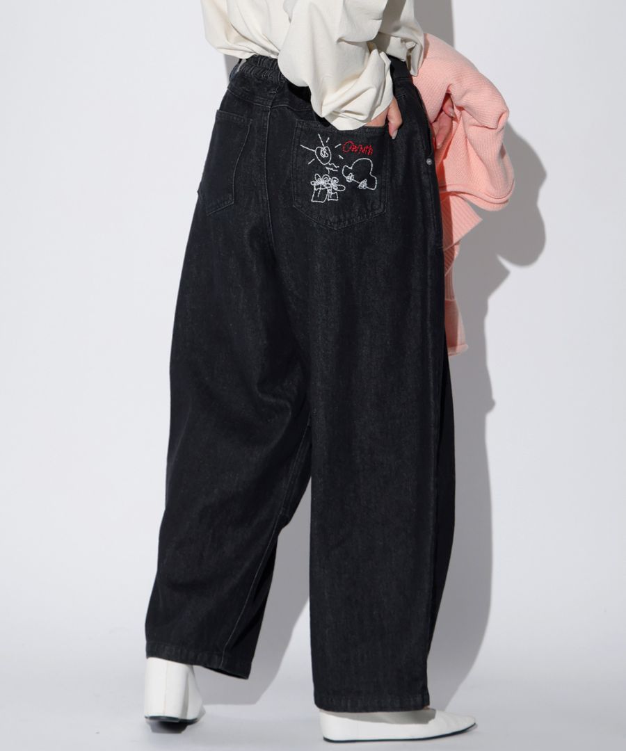 【クリアランスバーゲン30%OFF!4日10時迄】刺繍デザイン デニム バレルパンツ レディース 綿100・メール便不可(返品・キャンセル・交換不可)