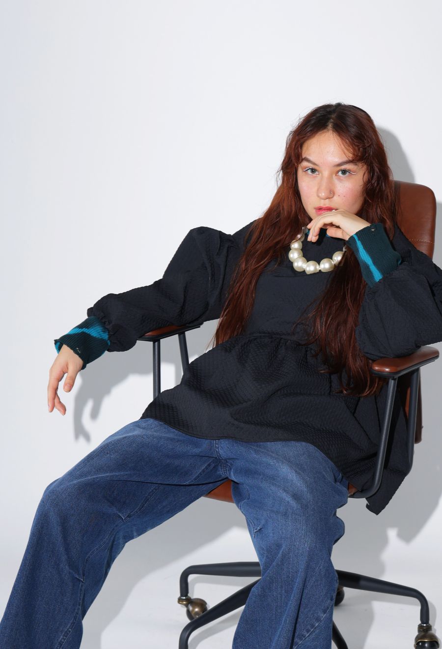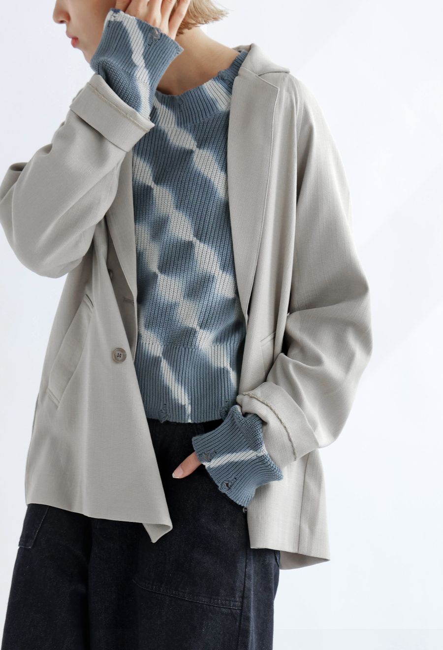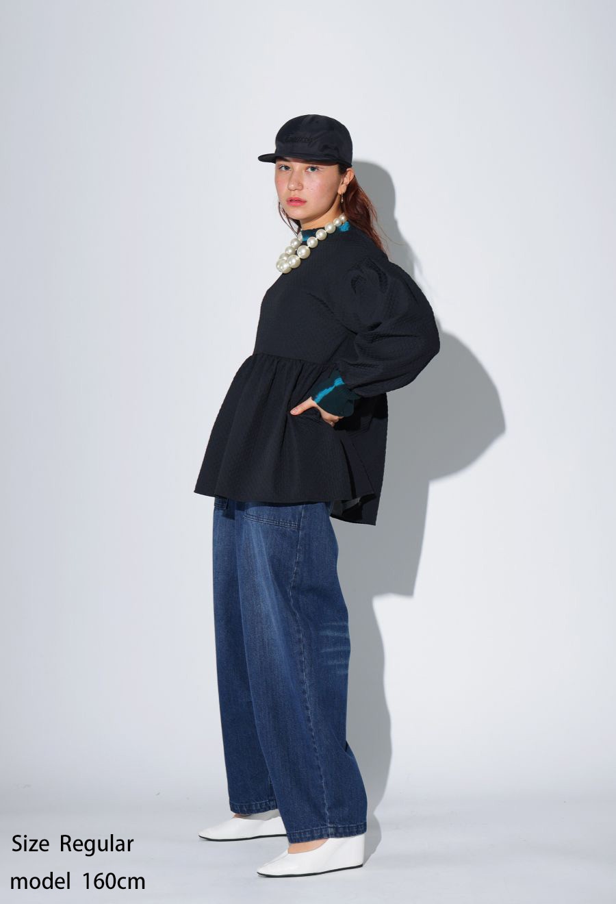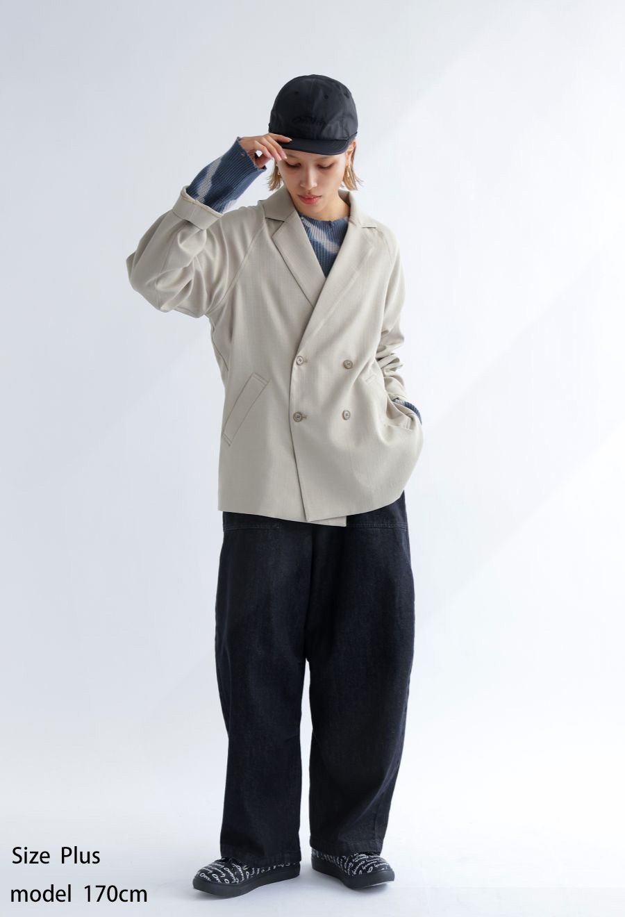 袖丈はしっかりと手首まで届く長袖で、リラックス感のあるワイドな形状が魅力。