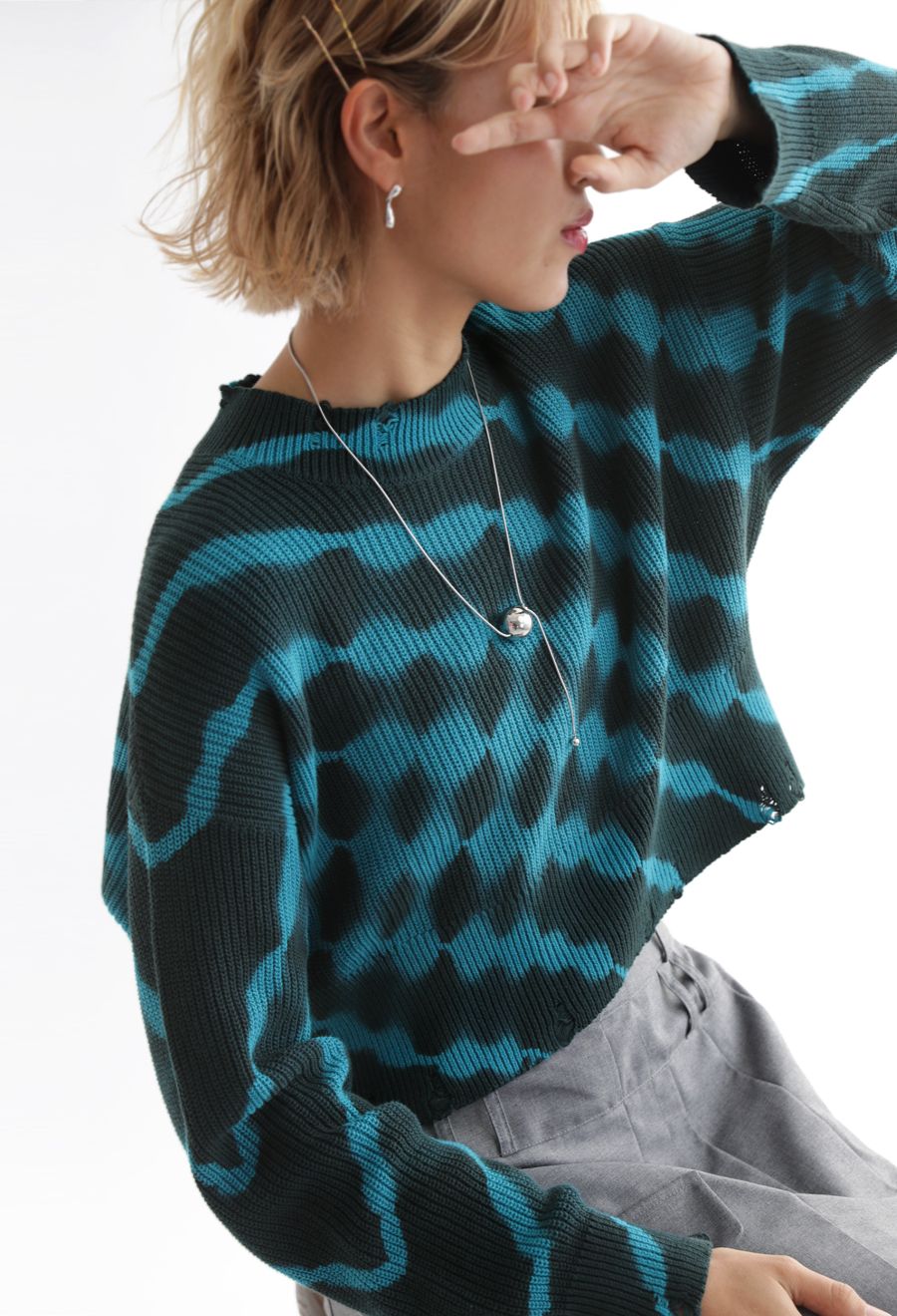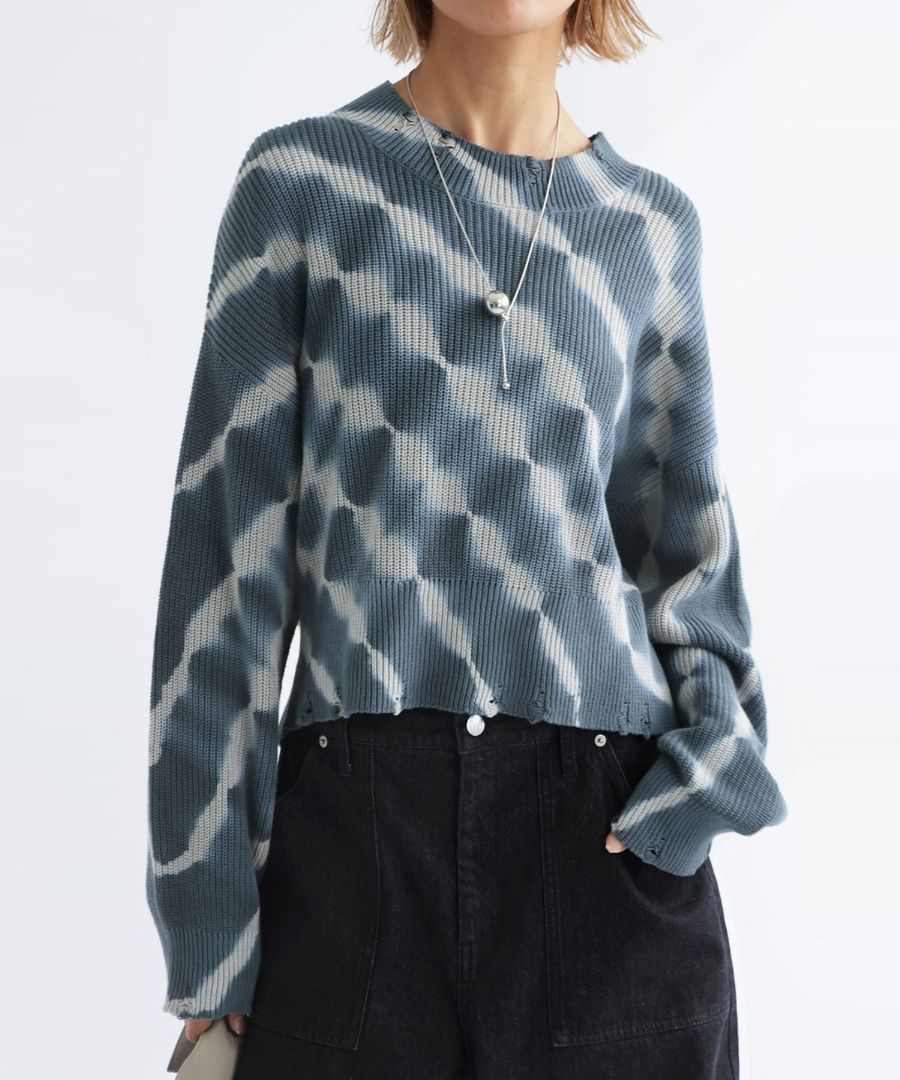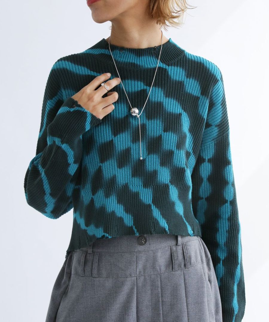 一枚で着映えする、配色にこだわったタイダイ柄のニットトップス。