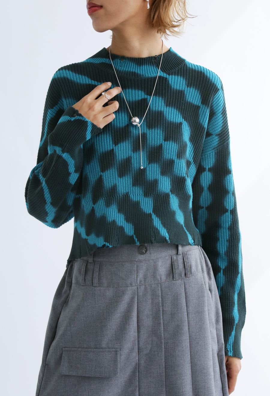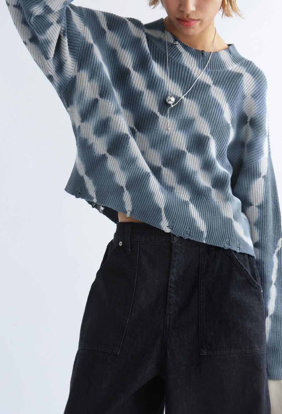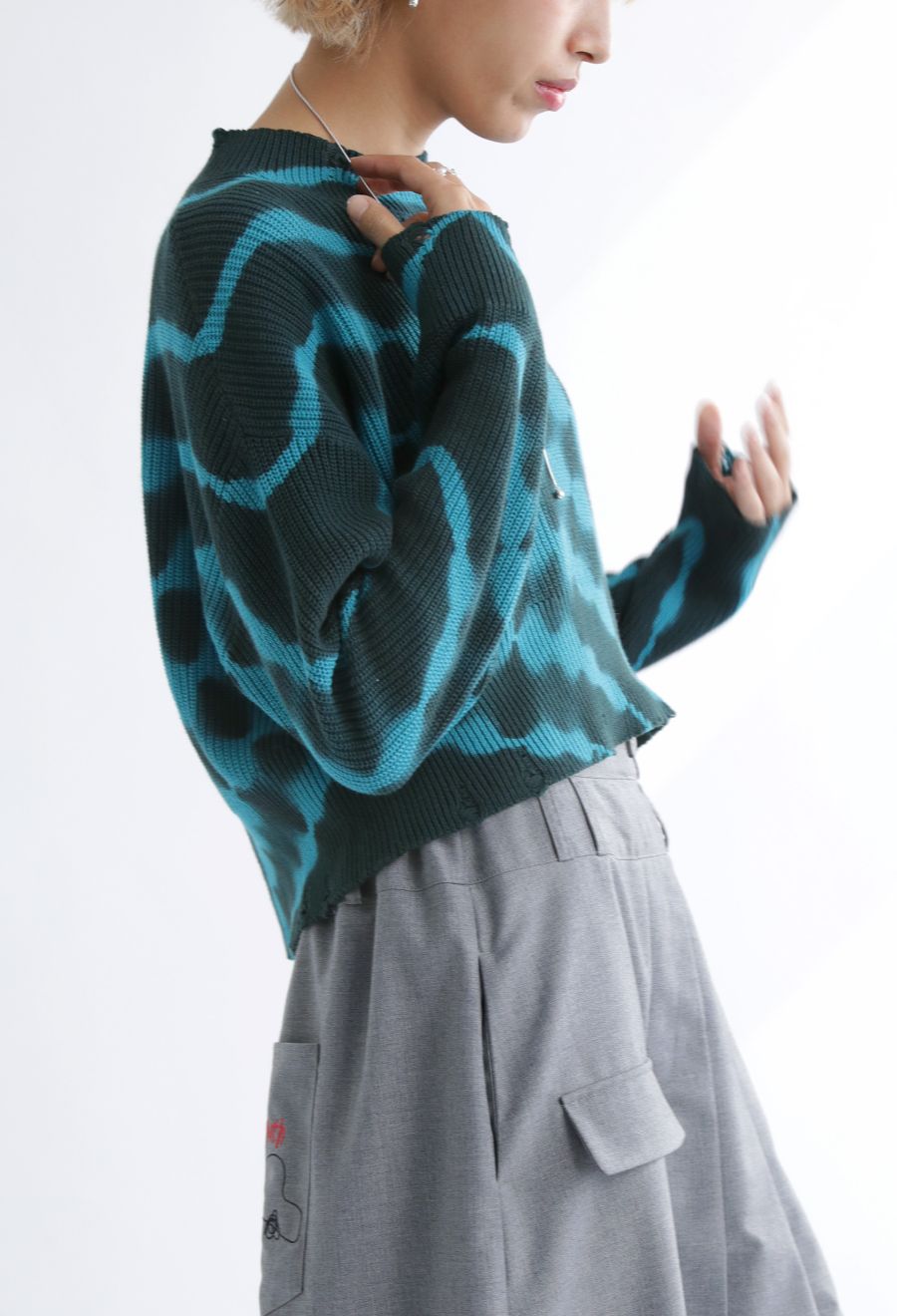 一枚で着映えする、配色にこだわったタイダイ柄のニットトップス。