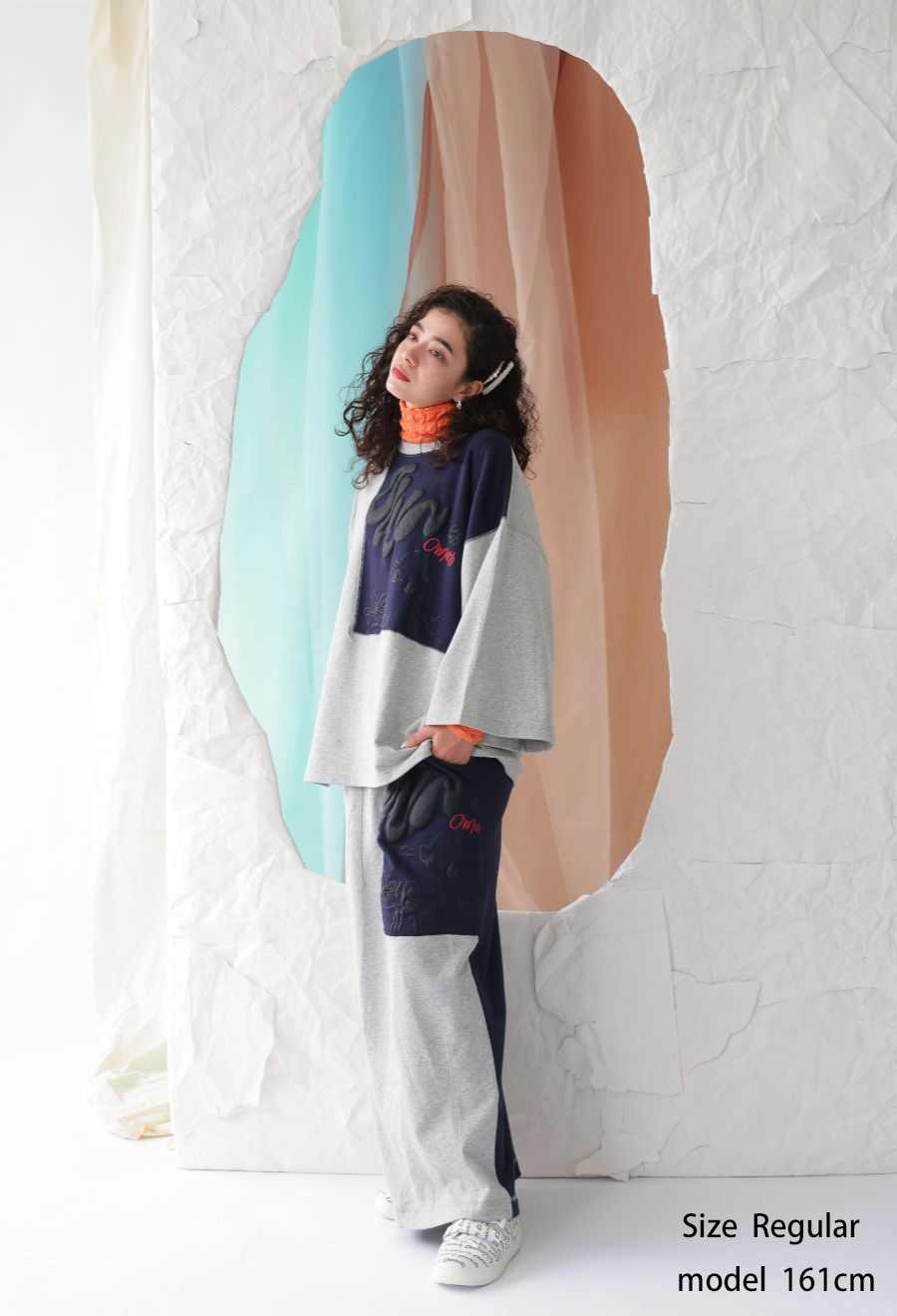 トップス品番「owt-0069」とのセットアップ着用もおすすめです。