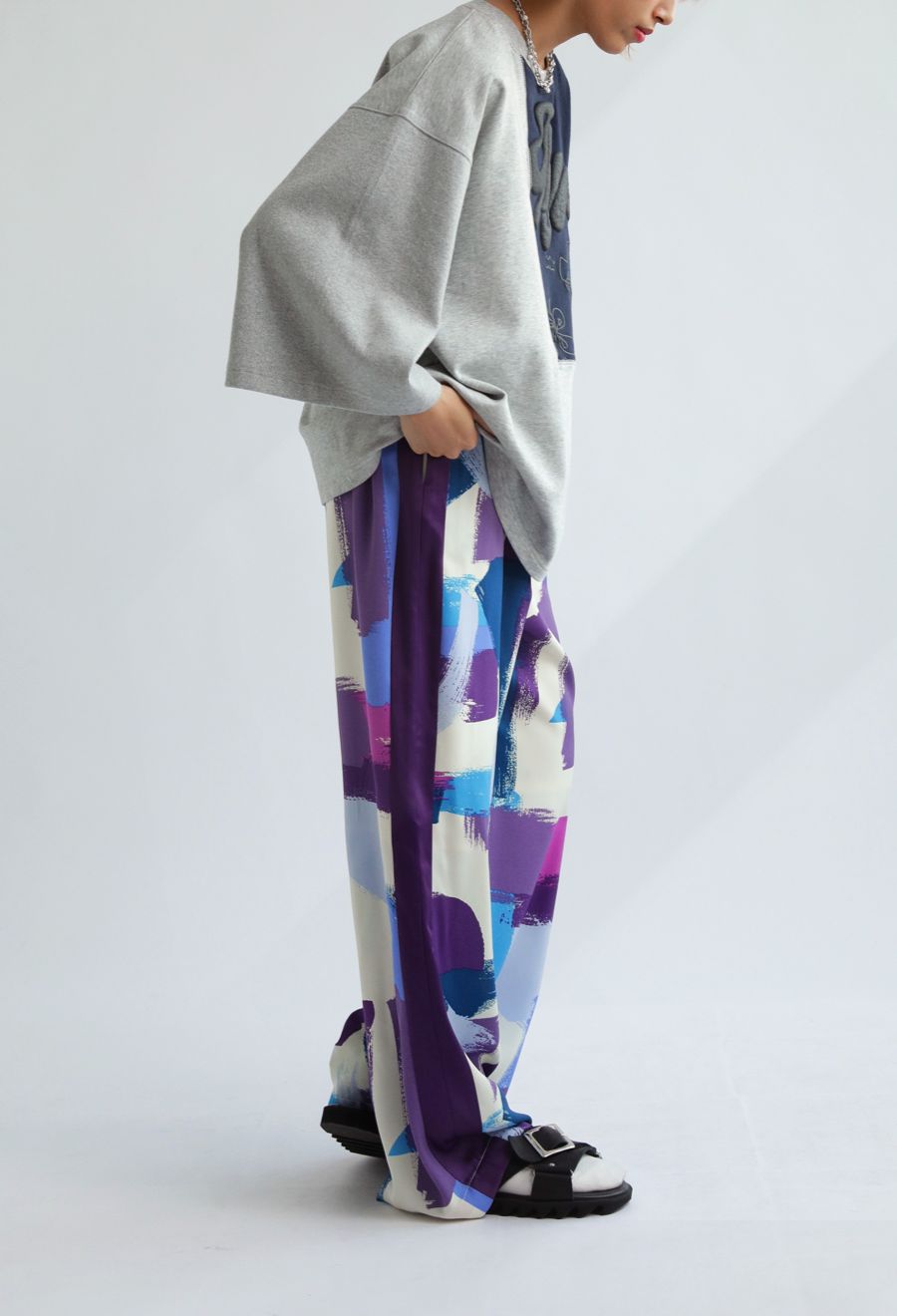 柄は無地ベースに落書きロゴとパフ部分の立体感でアクセントを追加。