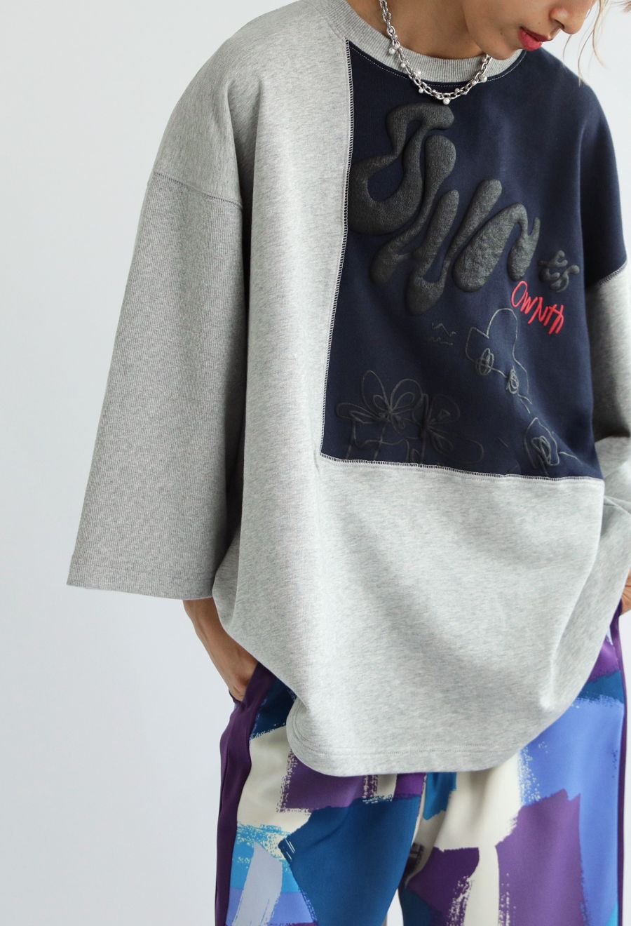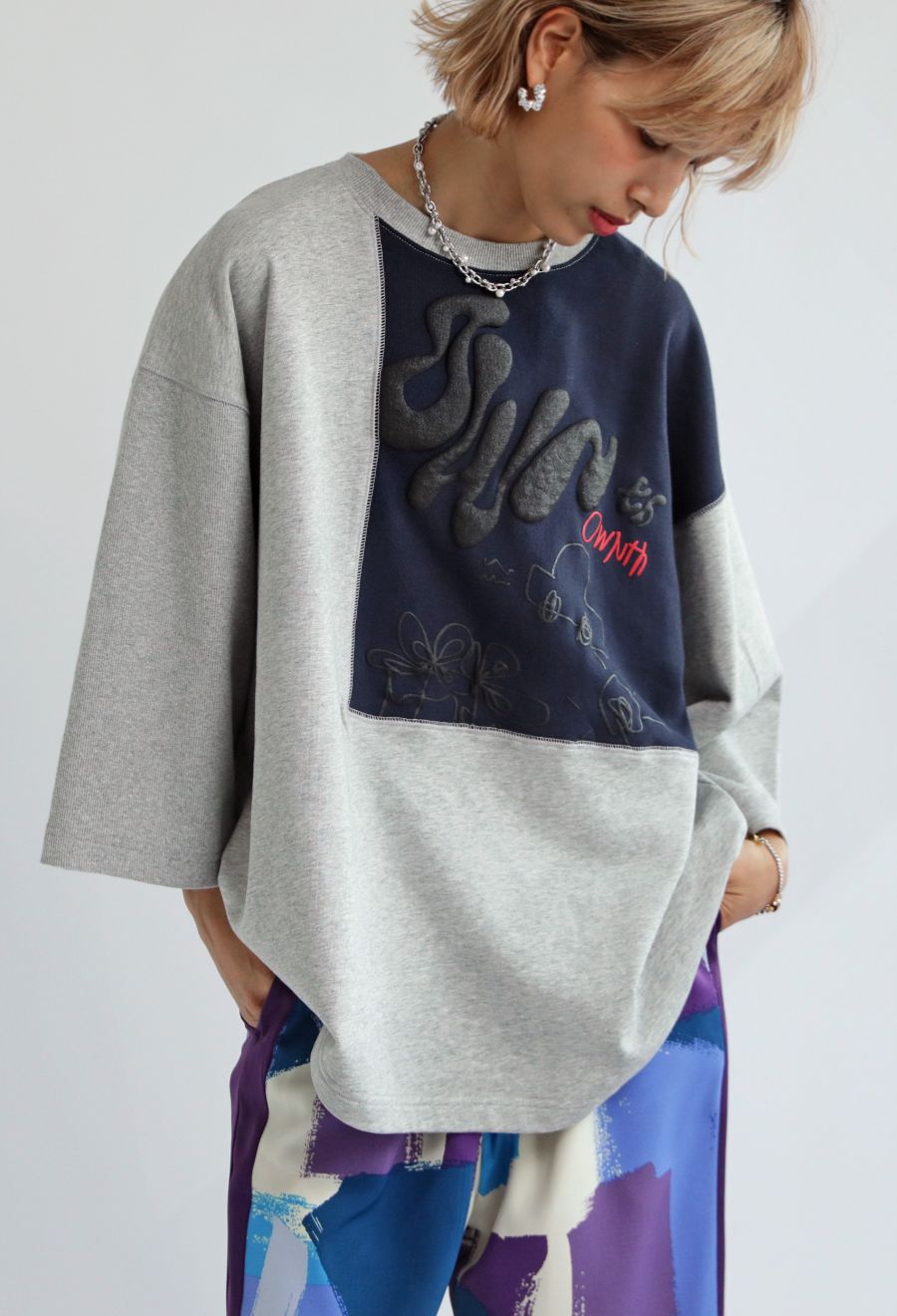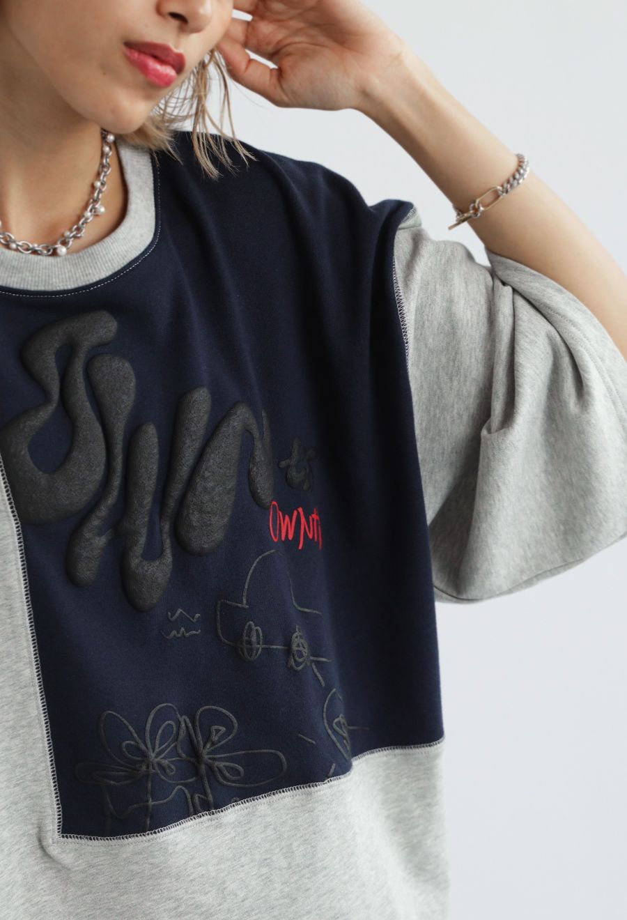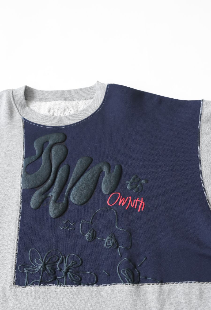 OWNthオリジナルの落書き風ロゴとパフプリントが目を引くプルオーバー。