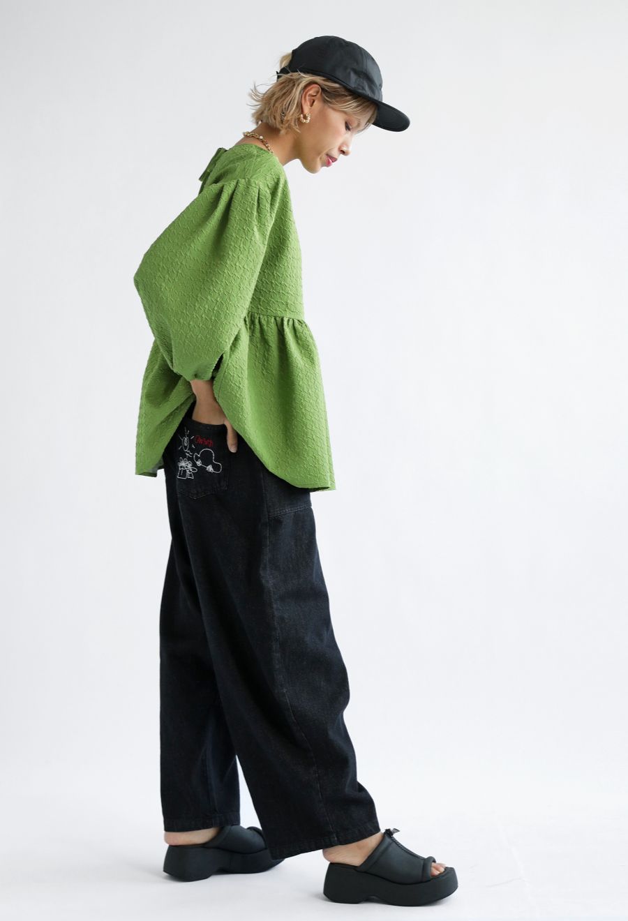 後頭部には反射プリントをさりげなく施し、スタイリッシュなアクセントに。