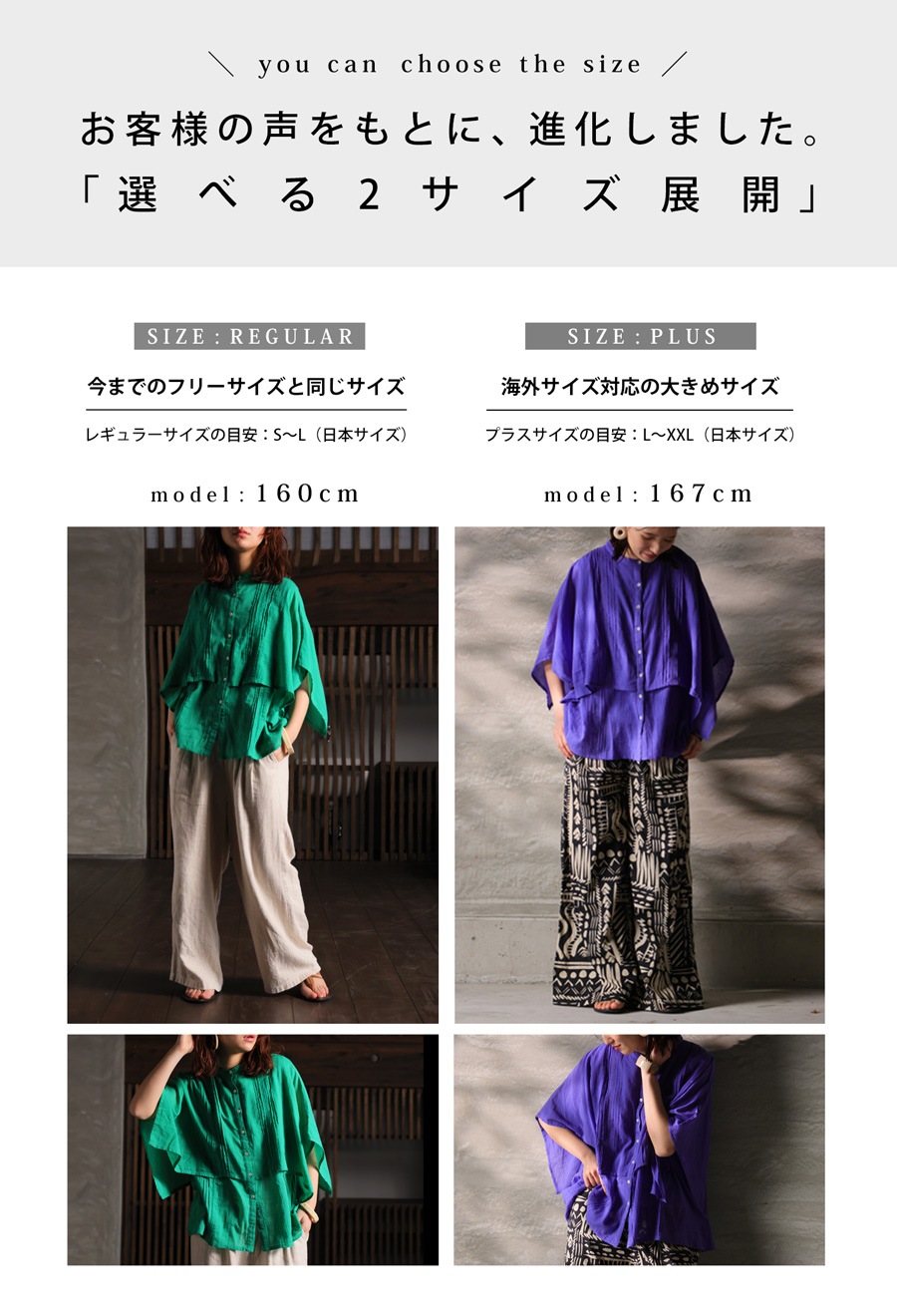 Regular(S~L相当)・Plus(L~XXL相当)の2サイズ展開!