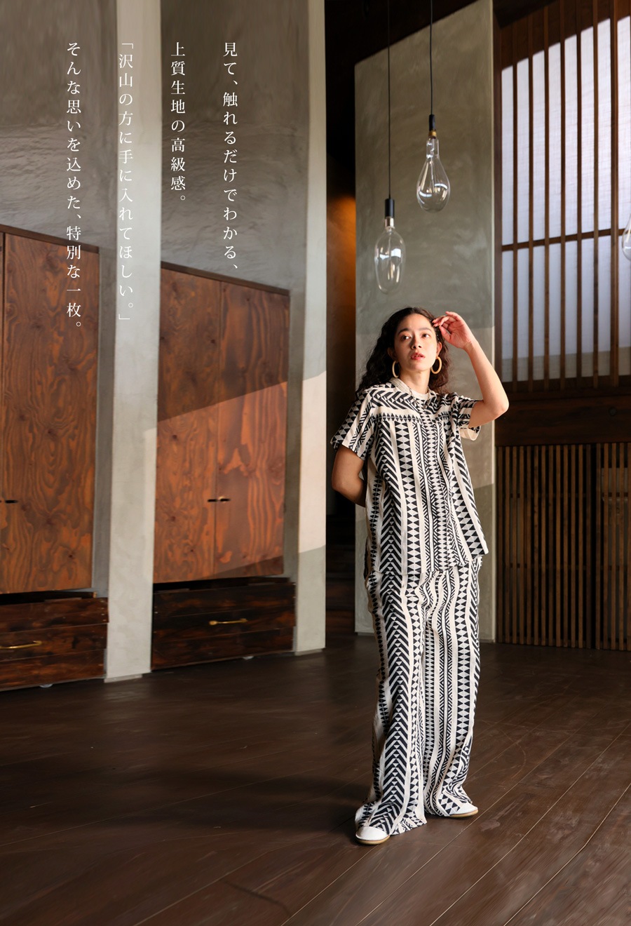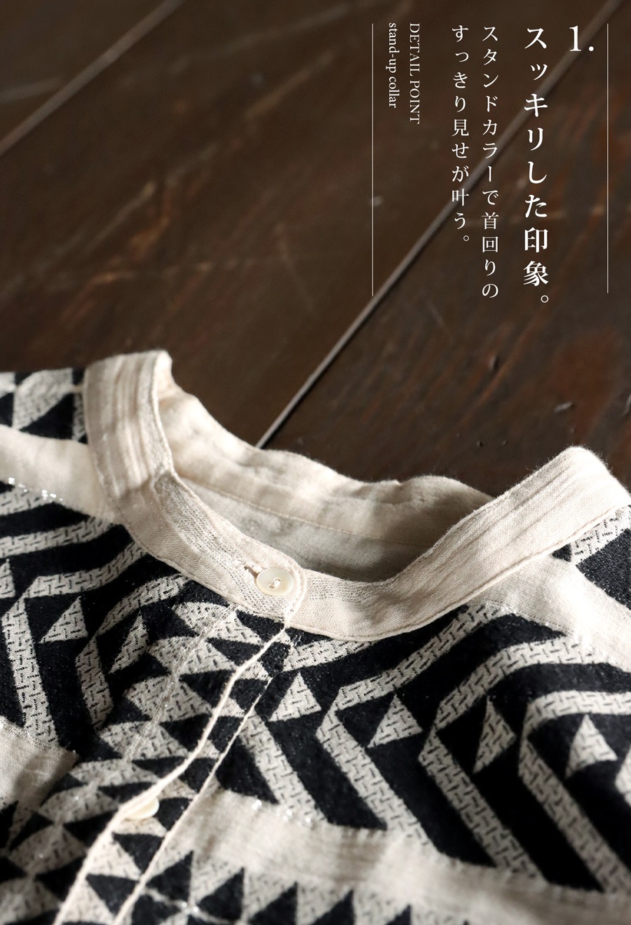 【検索ワード】インド綿 ジャガード織シャツ シャツ レディース トップス 半袖 柄 エスニック柄 柄シャツ 幾何学柄 ジオメトリック セットアップ スタンドネック バンドカラー ライン ラメ 綿混 ラウンド裾 前後差 前開き 比翼ボタン ゆったり サイズ展開 Regular Plus ナチュラル オリエンタル 高級感 羽織り 綿 コットン 大きめ 大きいサイズ ブラウス デザインシャツ カジュアルシャツ antiqua mulumulu アンティカ ムルムル 大人 おしゃれ 10代 20代 30代 40代 50代 60代 春 夏 お洒落 カジュアル かわいい かっこいい あんてぃか インド製 ジャイプール 繊細 手仕事 職人技