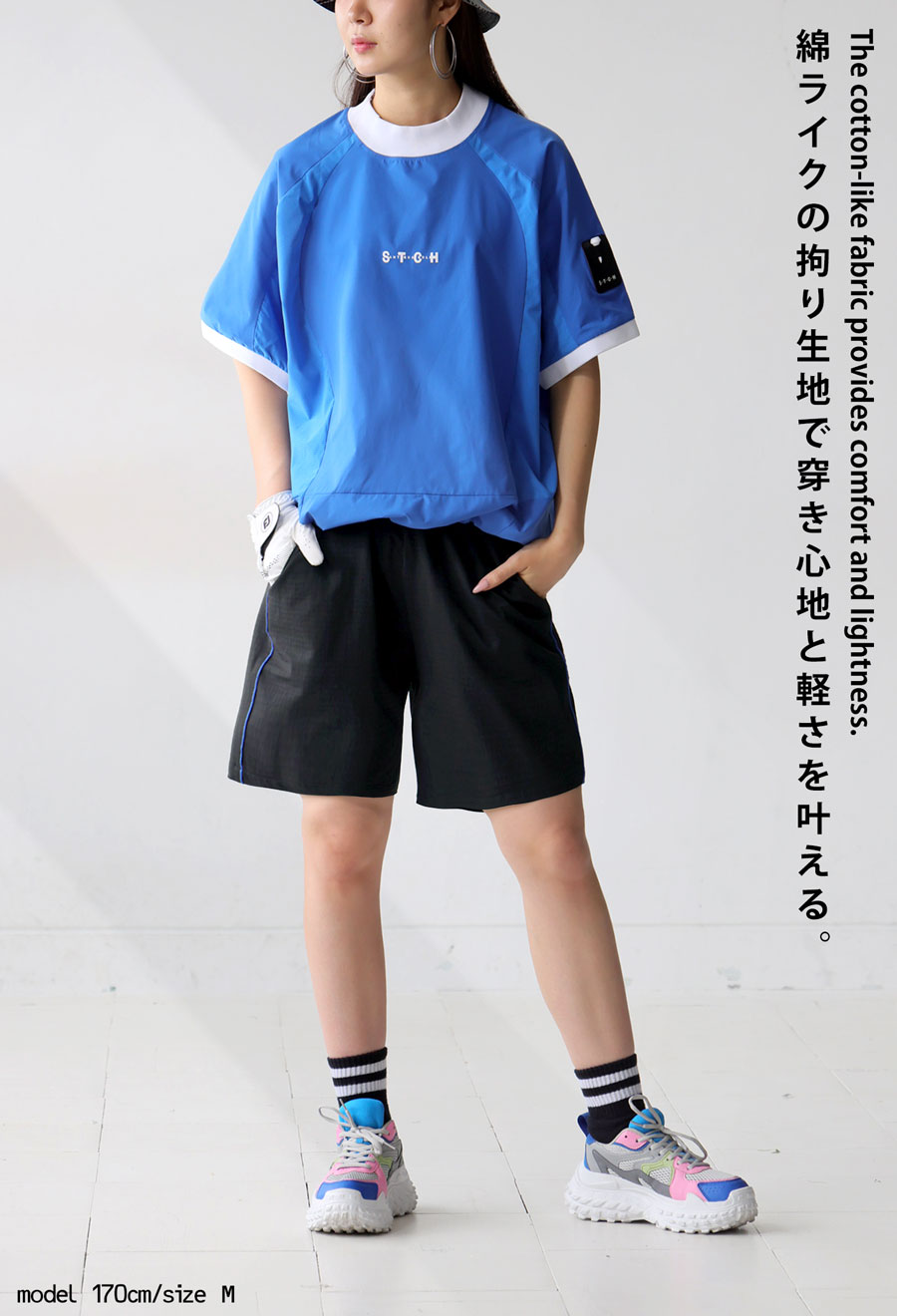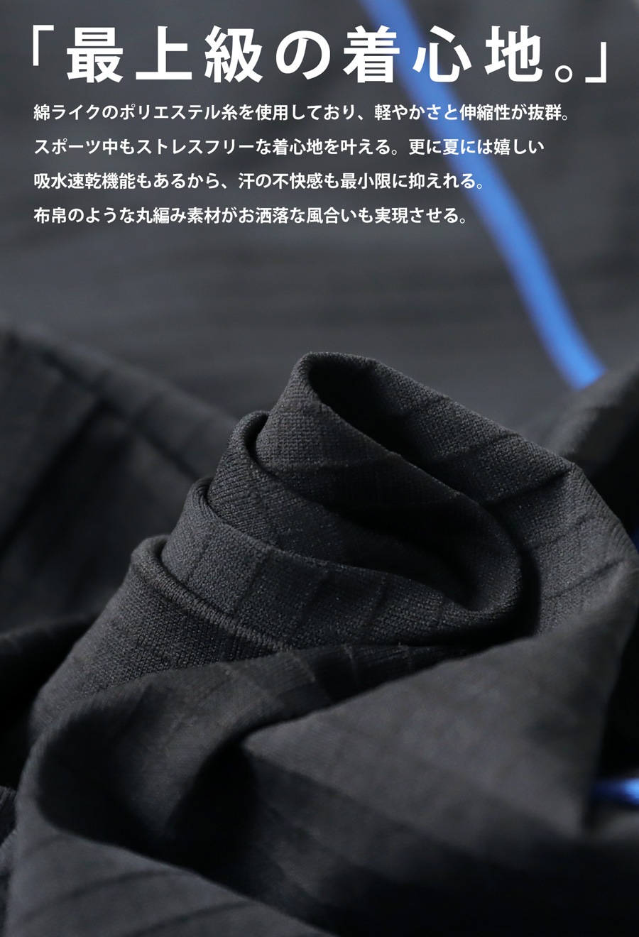 ・スポーツシーンにピッタリな吸水速乾機能付き。