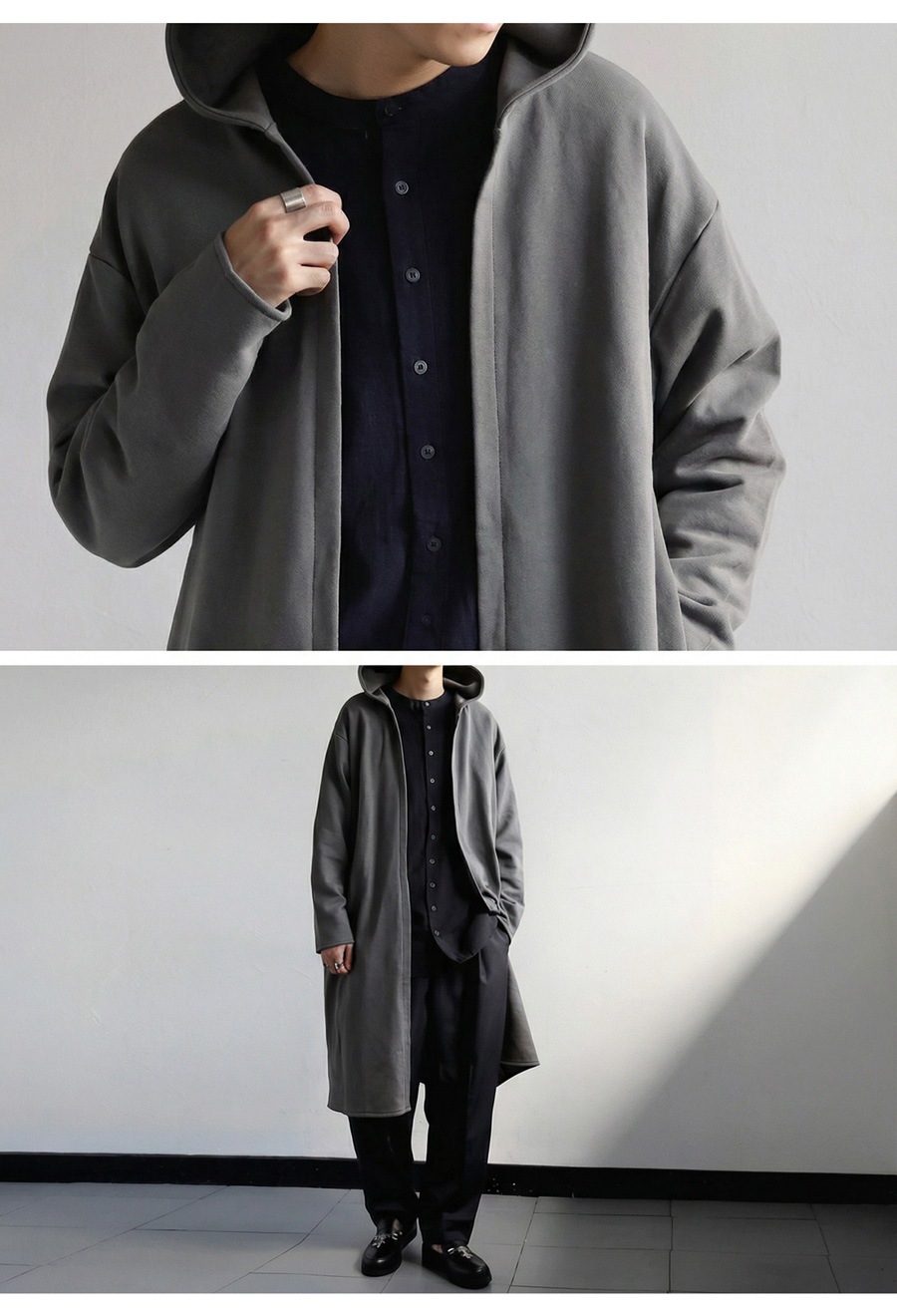 サイドポケット付きで実用性も高く、さらっと羽織るだけで装いが決まる万能アウターです。