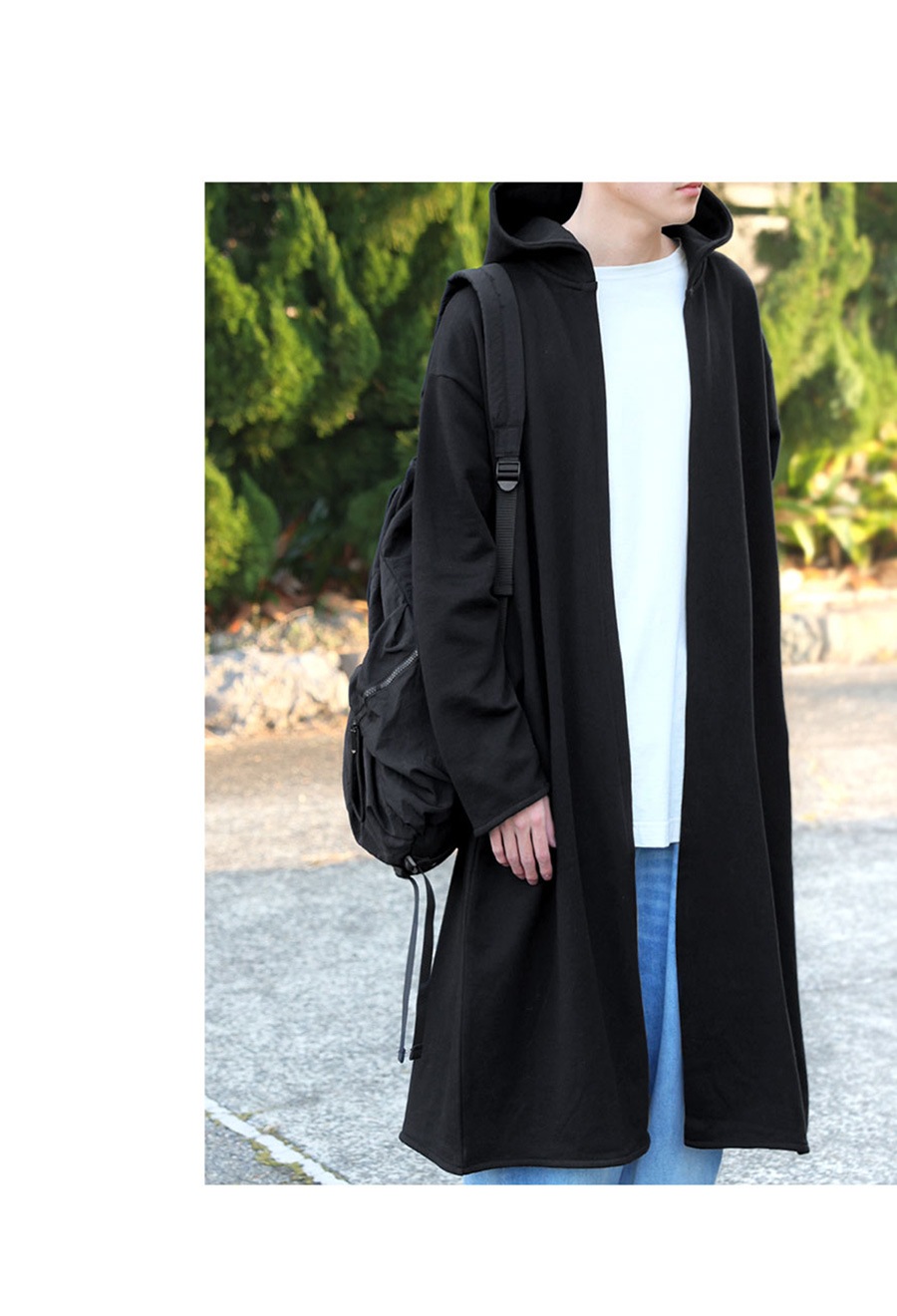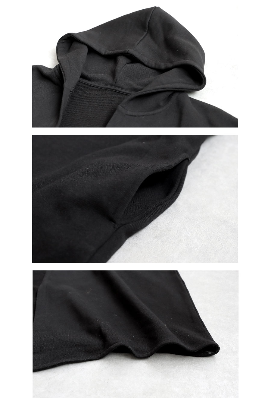 ネックラインは立体的なフード仕様で顔まわりをやさしく包み込み、日よけとしても活躍します。