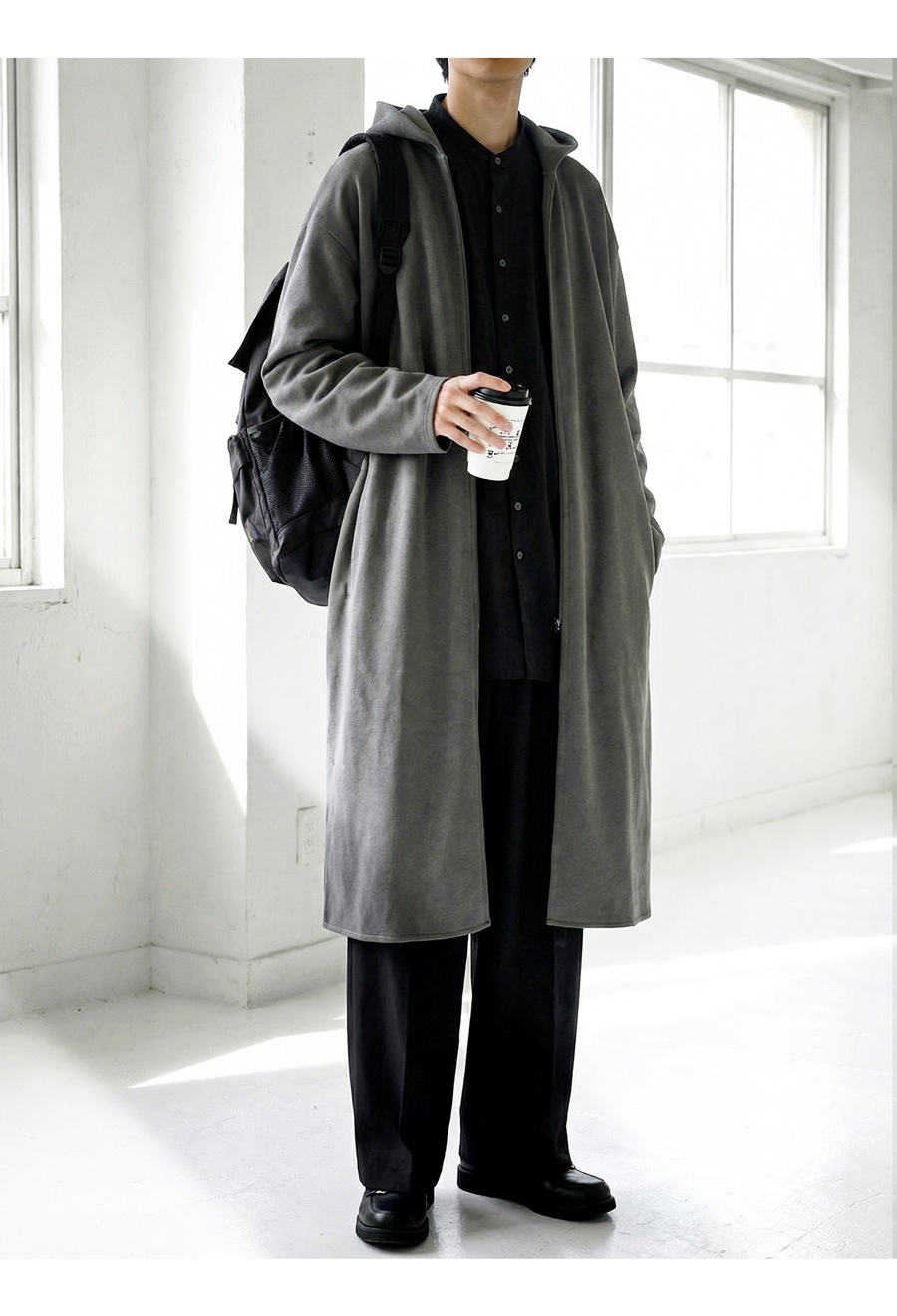 ボタンやファスナーのないミニマルなデザインで重ね着しやすく、ストレスフリーな着心地です。