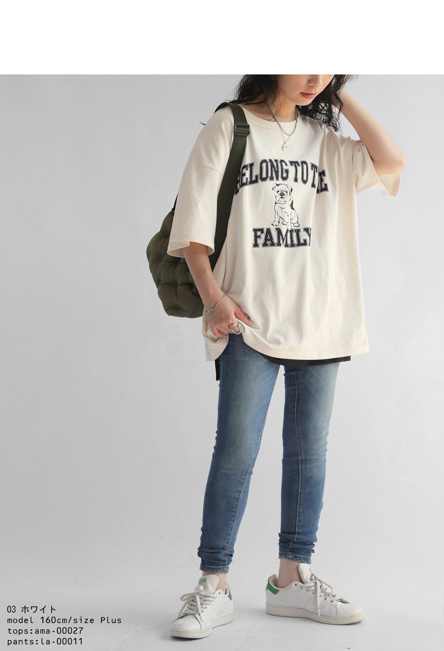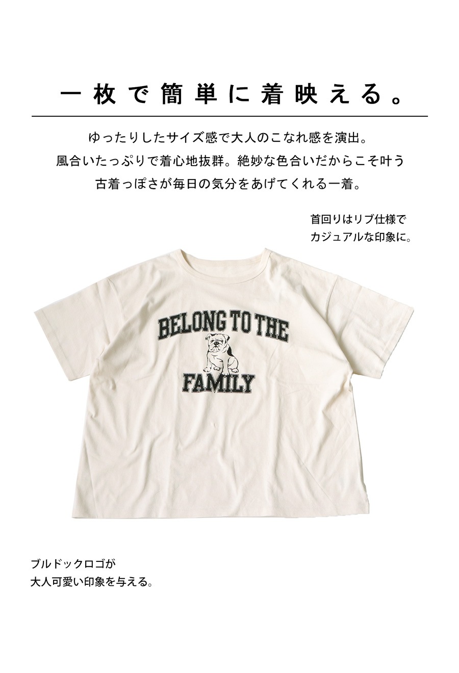 【検索ワード】ロゴT Tシャツ レディース トップス 半袖 五分袖 綿100 カットソー 丸首 クルーネック 英字 ロゴ ロゴTシャツ イラスト オリジナルデザイン ブルドック 犬 ドッグ プルオーバー ゆったり サイズ展開 Regular Plus 古着風 ヴィンテージ感 半袖トップス シンプル 綿 コットン 大きめ 大きいサイズ 親子 リンクコーデ 親子コーデ お揃い ファミリー antiqua アンティカ 大人 おしゃれ 10代 20代 30代 40代 50代 60代 春 夏 お洒落 カジュアル かわいい かっこいい あんてぃか
