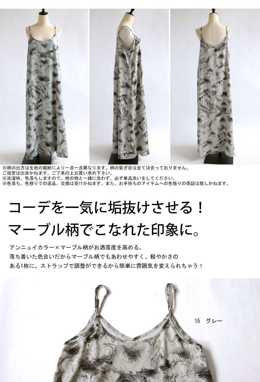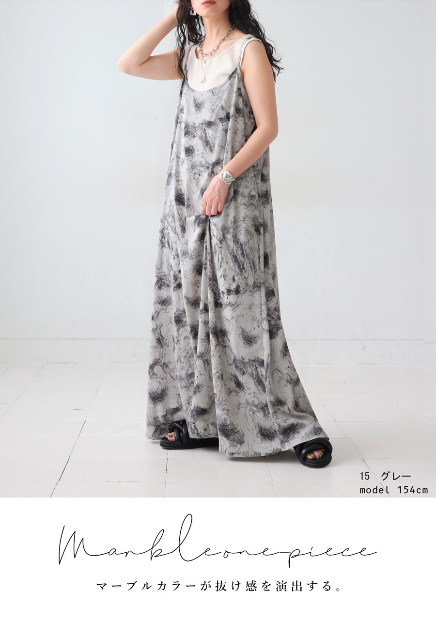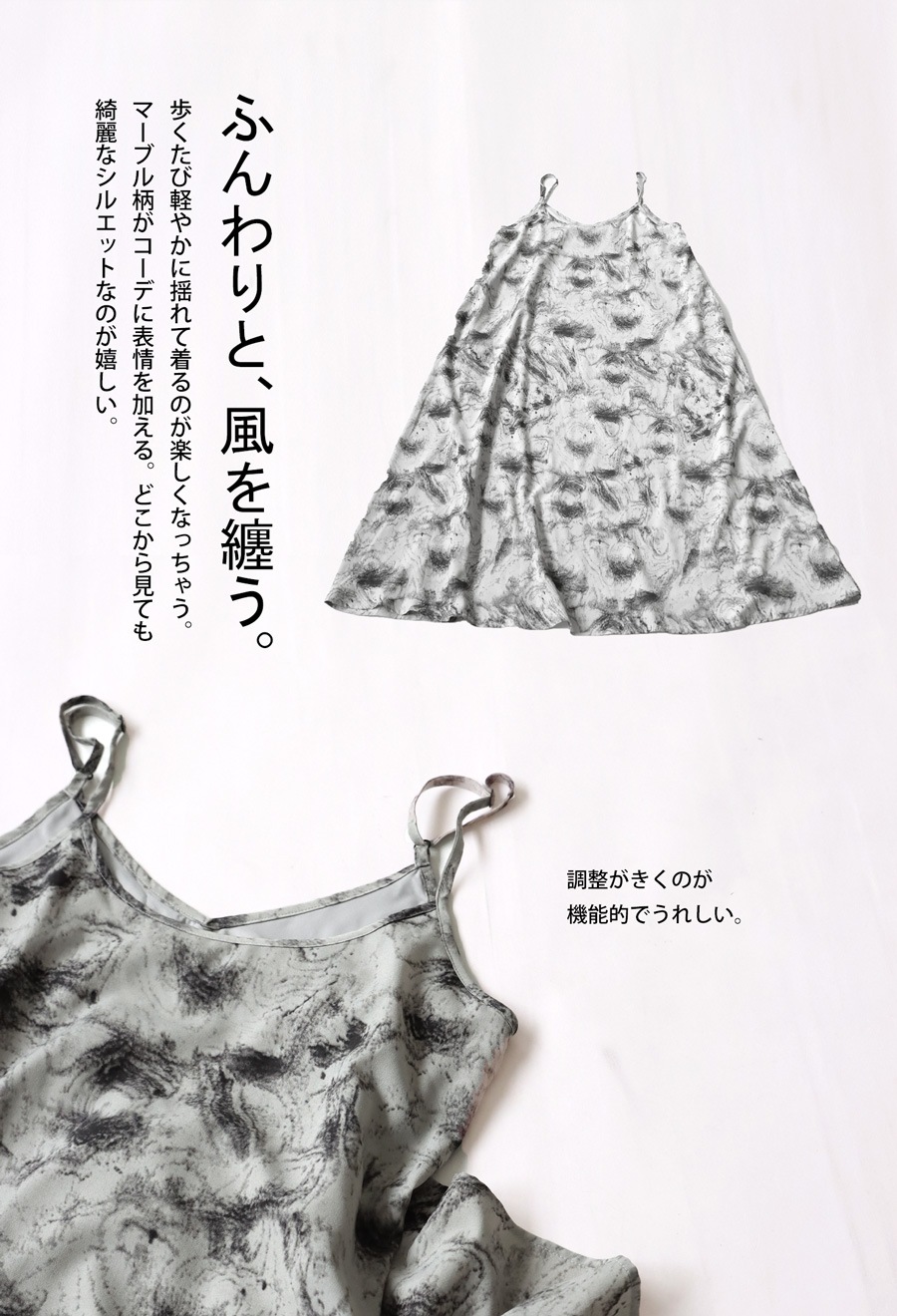 アンニュイな印象つくる『マーブル柄キャミワンピース』