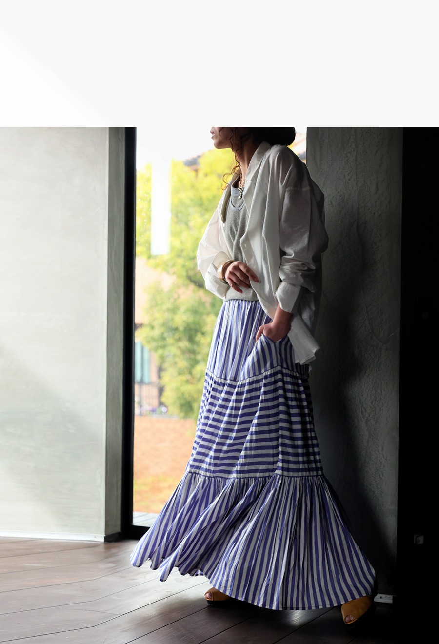 風合い良く、大人可愛いをツクル『ストライプスカート』