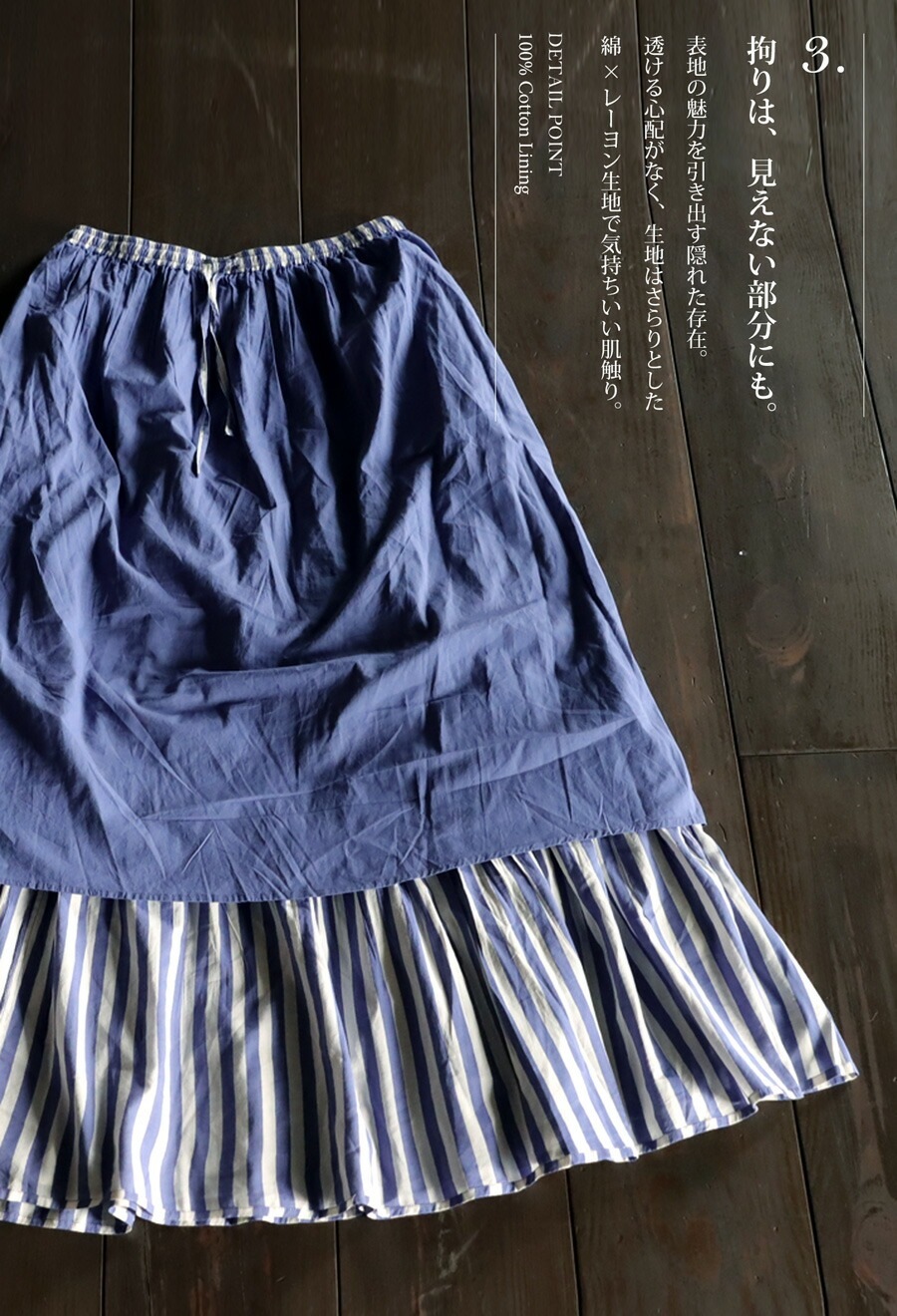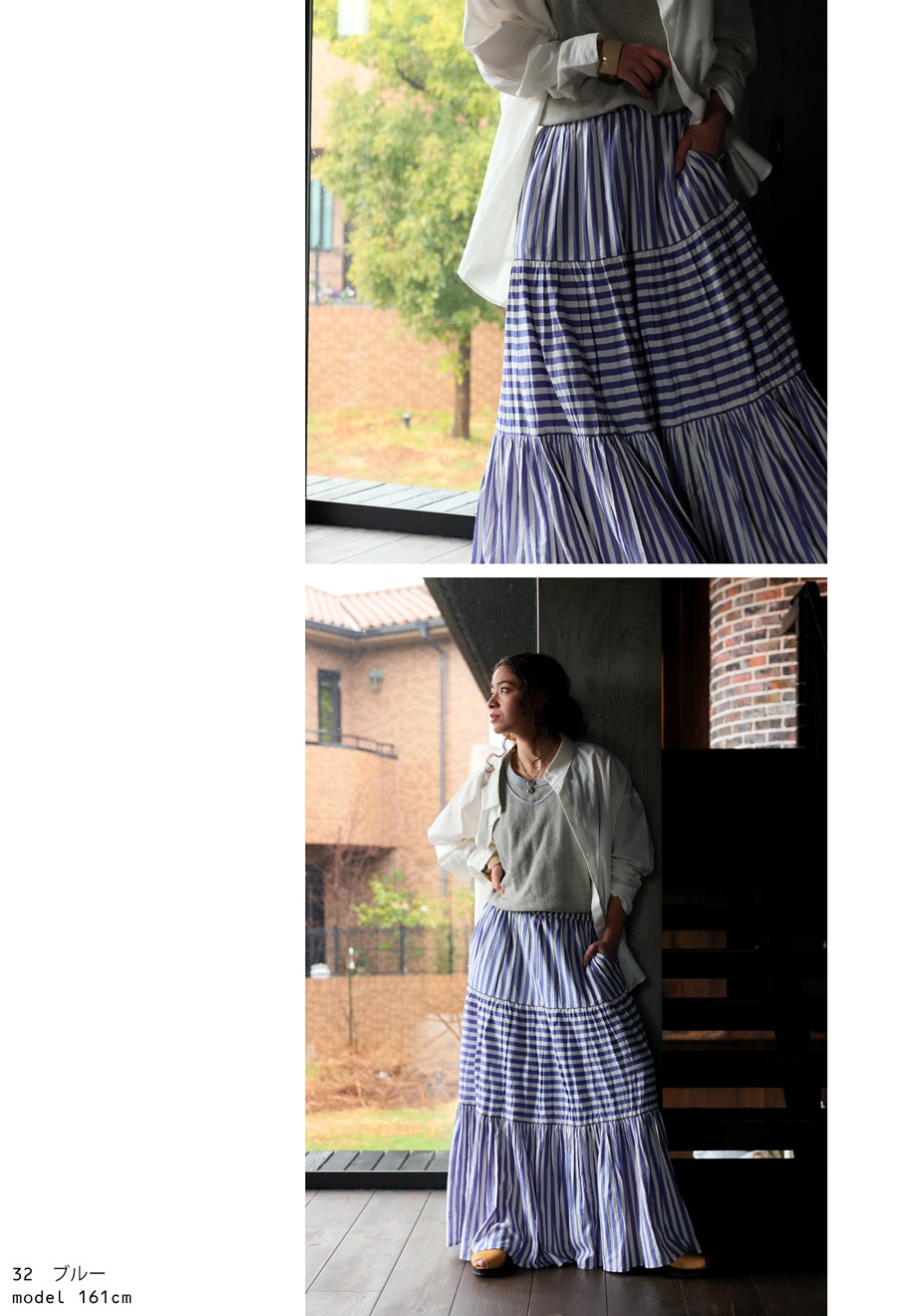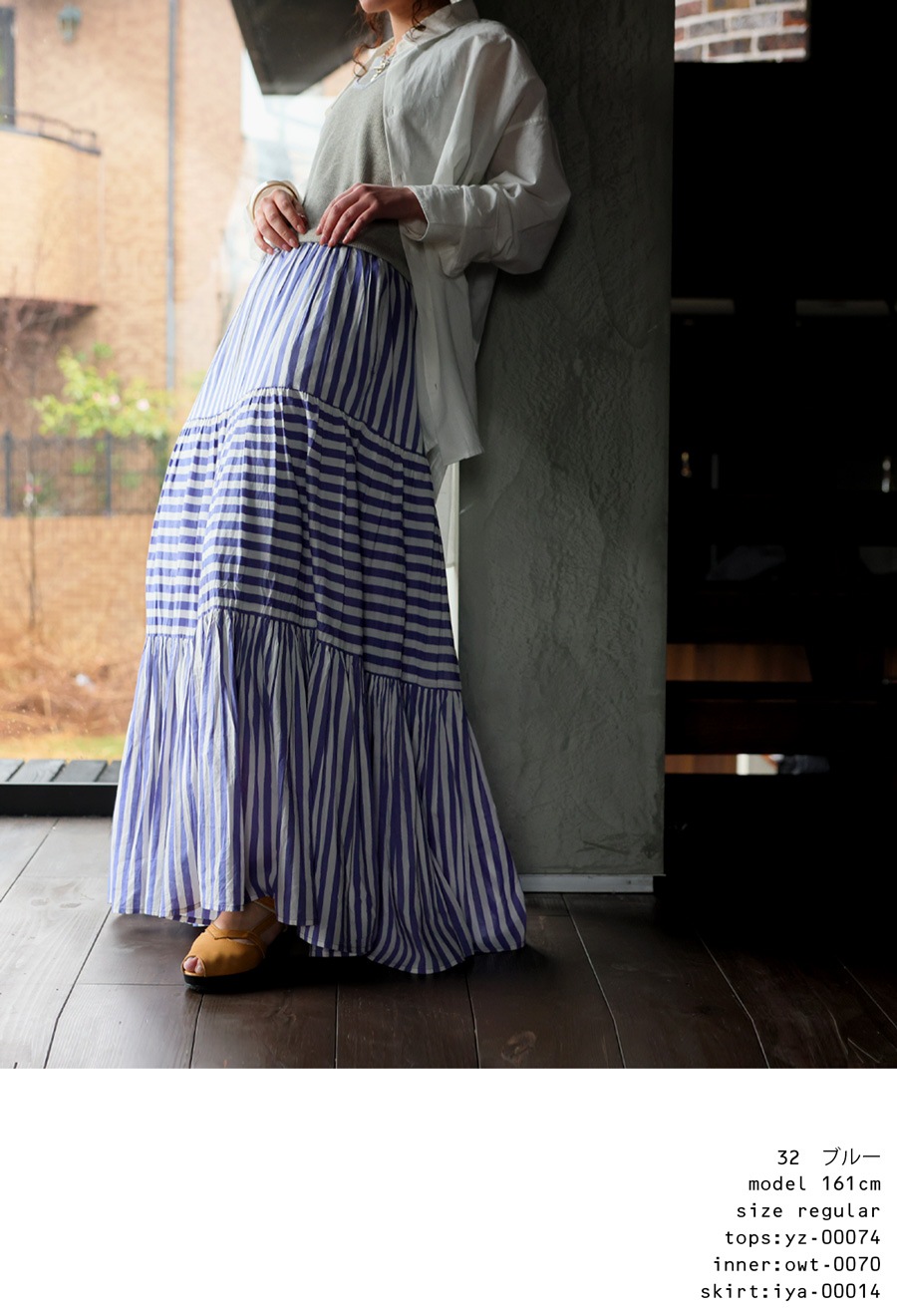 【検索ワード】インド綿 ストライプスカート スカート レディース ボトムス ロング 柄 ストライプ柄 柄スカート 裏地付き ウエストゴム Aライン ポケット付き ギャザー フレア ティアードデザイン ゆったり サイズ展開 Regular Plus ナチュラル 高級感 シンプル 上品 綿 コットン ボリューム 体型カバー 細見え 華奢見え 大きめ 大きいサイズ ロングスカート フレアスカート ティアードスカート antiqua mulumulu アンティカ ムルムル 大人 おしゃれ 10代 20代 30代 40代 50代 60代 春 夏 お洒落 カジュアル かわいい かっこいい あんてぃか インド製 ジャイプール 繊細 手仕事 職人技
