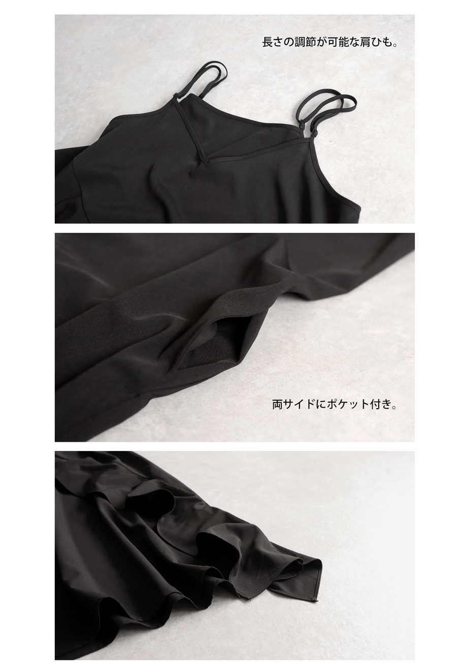 サイドから裾まで長く続く大胆なフリルが贅沢なキャミワンピース。