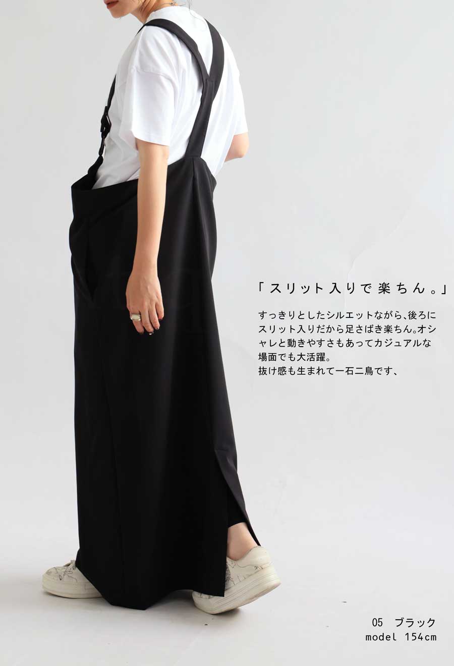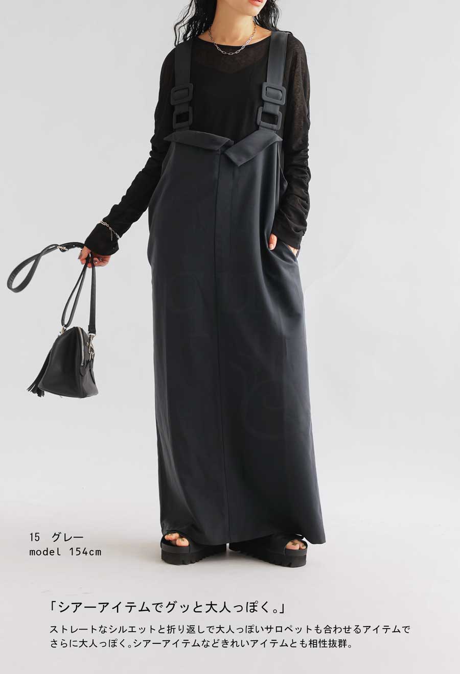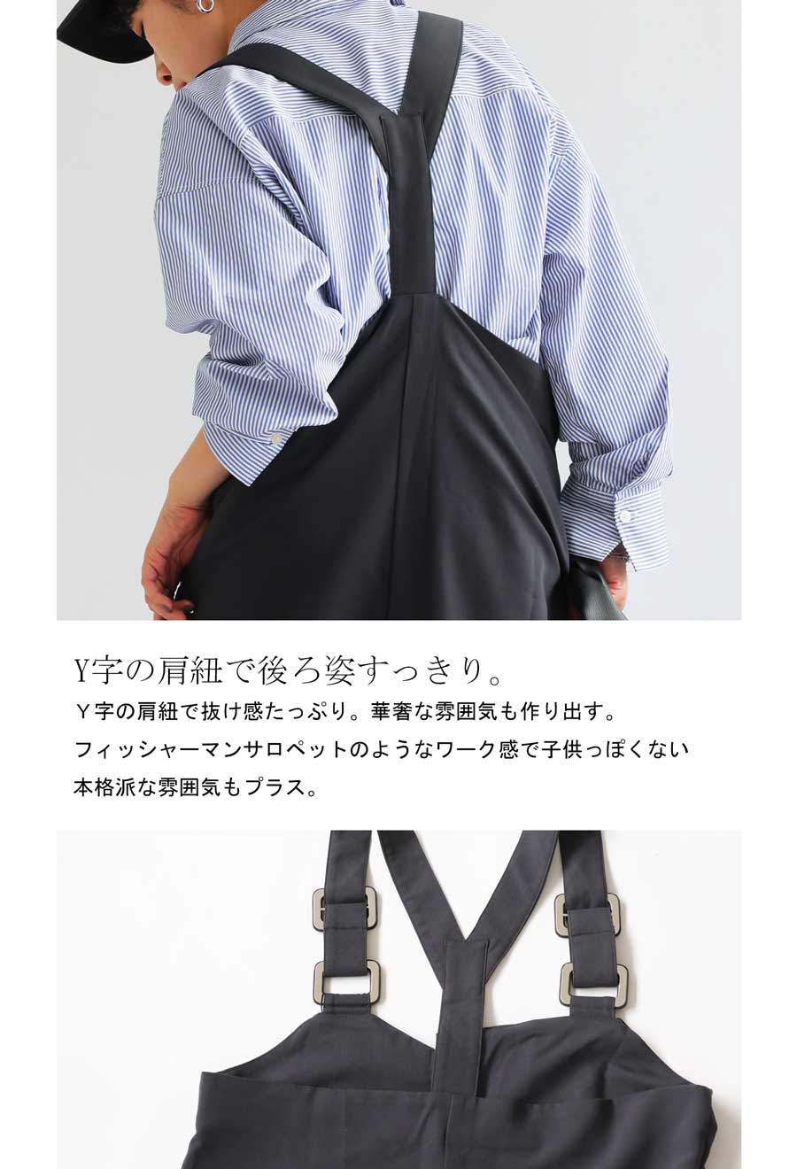 サロペットでも幼くならない、シルエットや質感など拘りの詰まったアイテム。