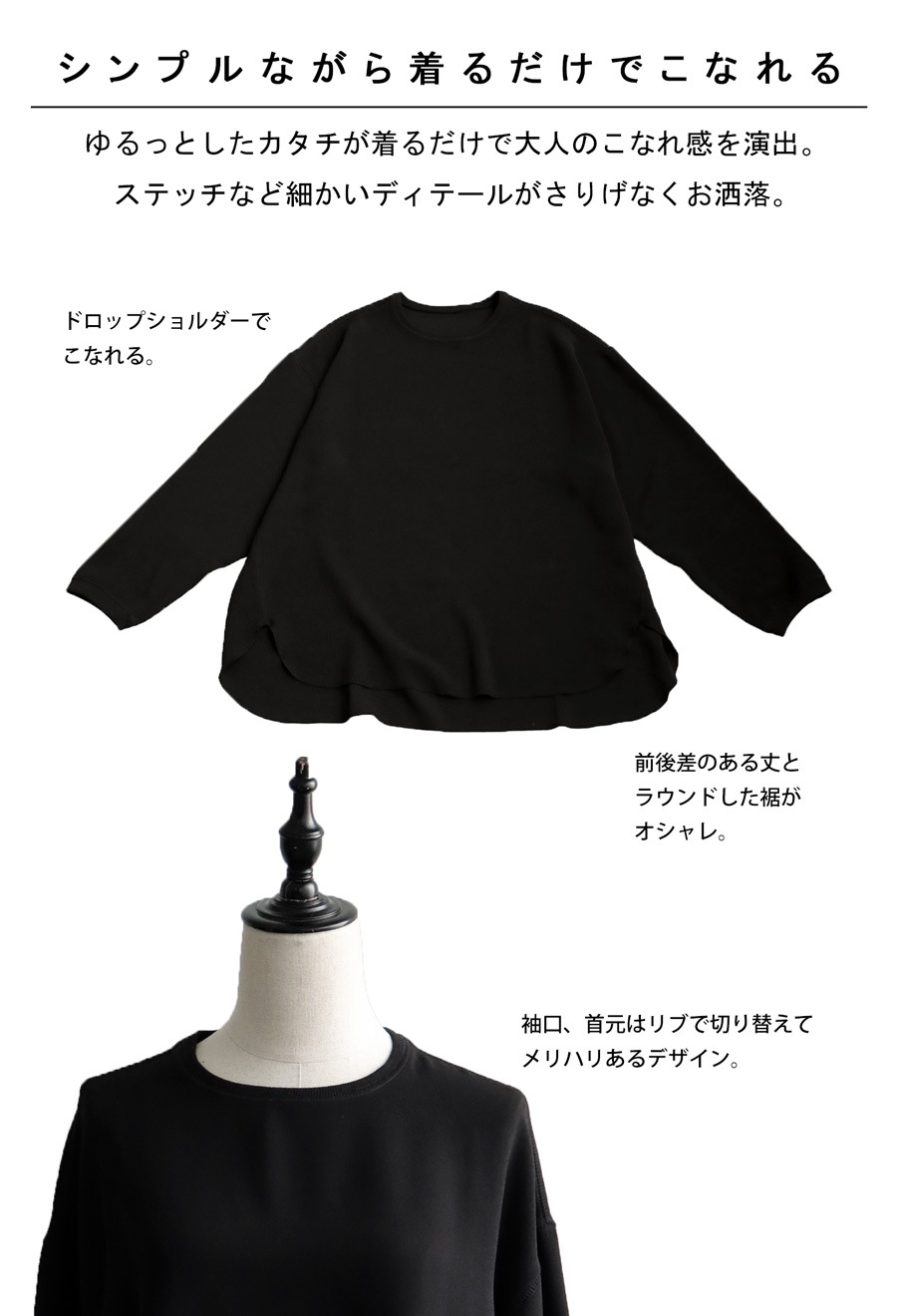 ゆるっとしたシルエットが、着るだけでこなれ感をつくるシンプルなトップス。