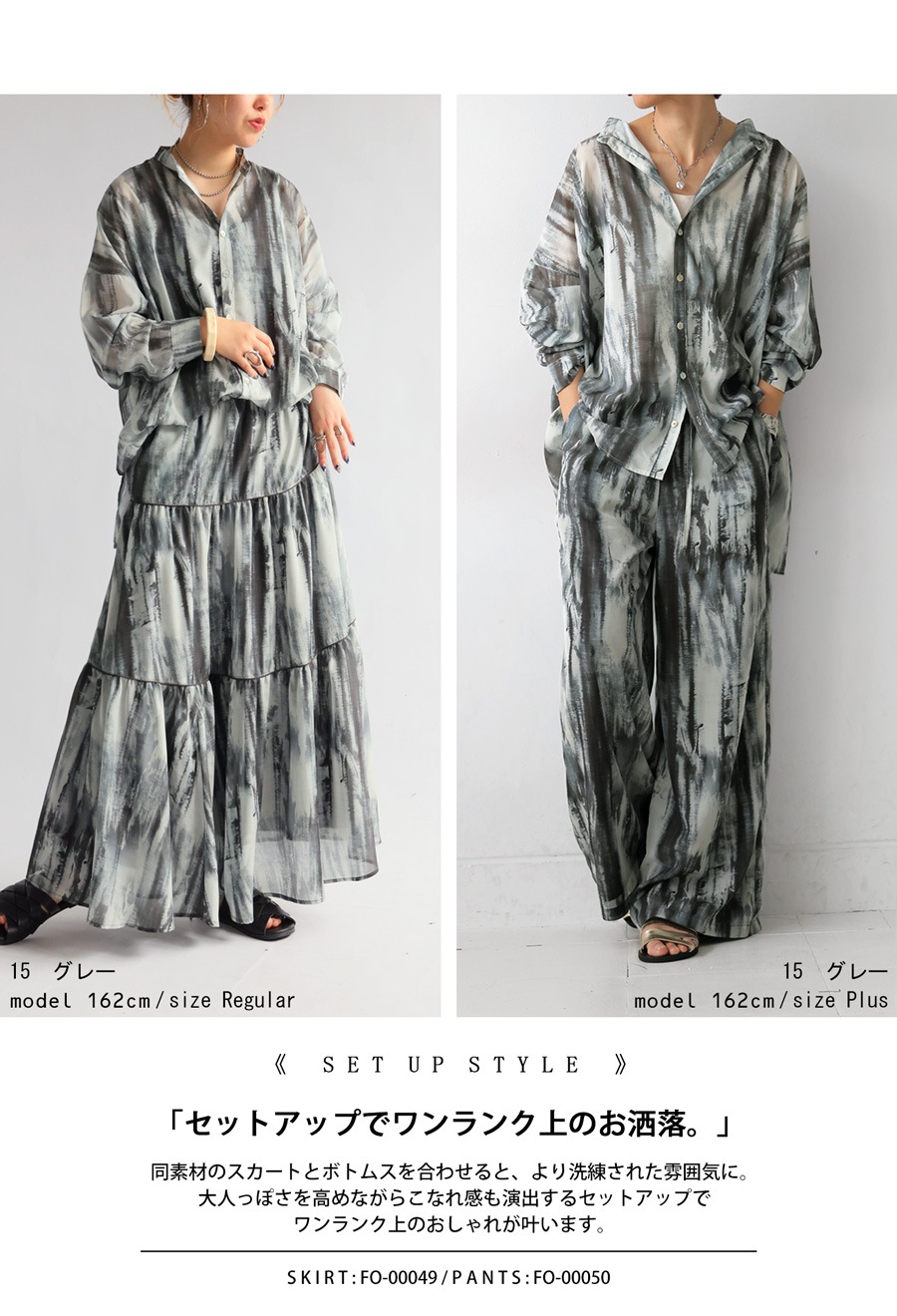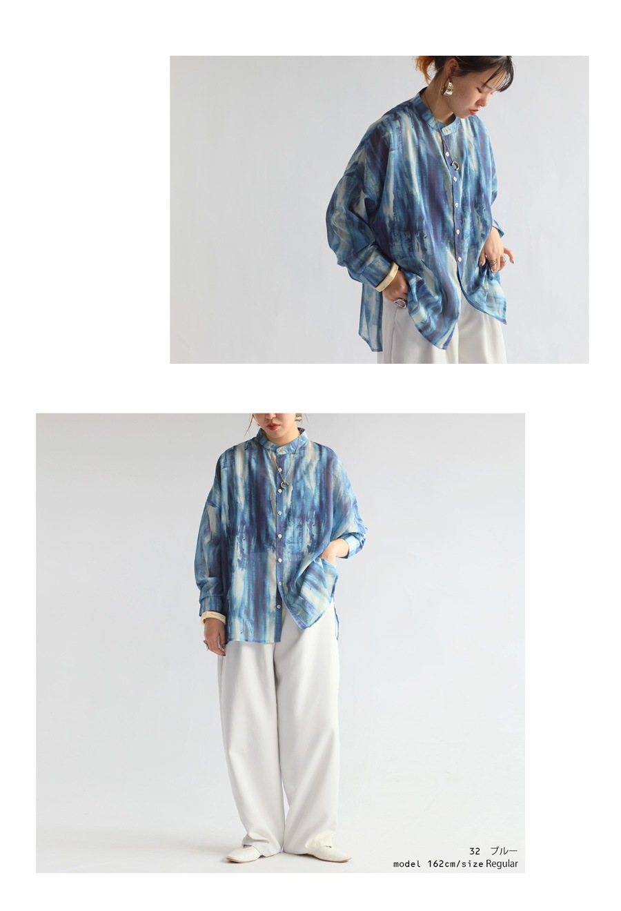 【検索ワード】シアーシャツ シャツ レディース トップス 長袖 ニュアンス柄 柄 柄シャツ セットアップ ゆったり 羽織り 前開き スタンドカラー バンドカラー シアー 透け 上品 レイヤード 重ね着 デザインシャツ ブラウス サイズ展開 Regular Plus antiqua アンティカ 大人 おしゃれ 10代 20代 30代 40代 50代 60代 春 夏 お洒落 カジュアル かわいい かっこいい あんてぃか