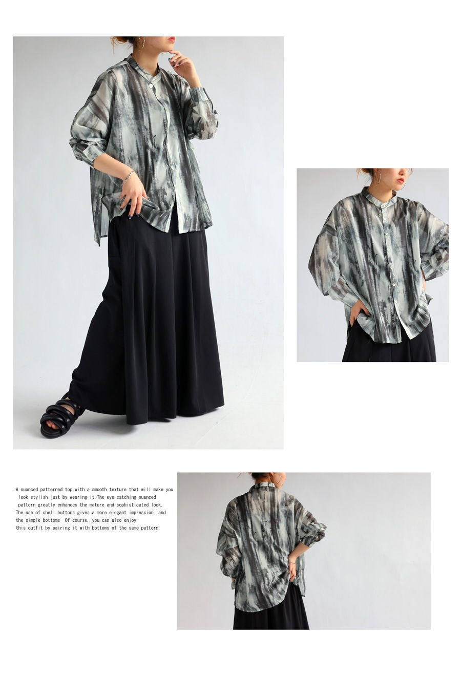上品に着こなす『ニュアンス柄シアーシャツ』