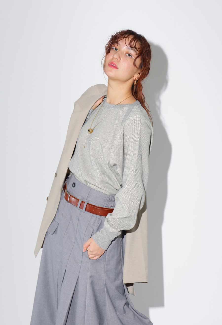 シンプルなデザインだからこそ、こなれた印象を一枚で演出します。