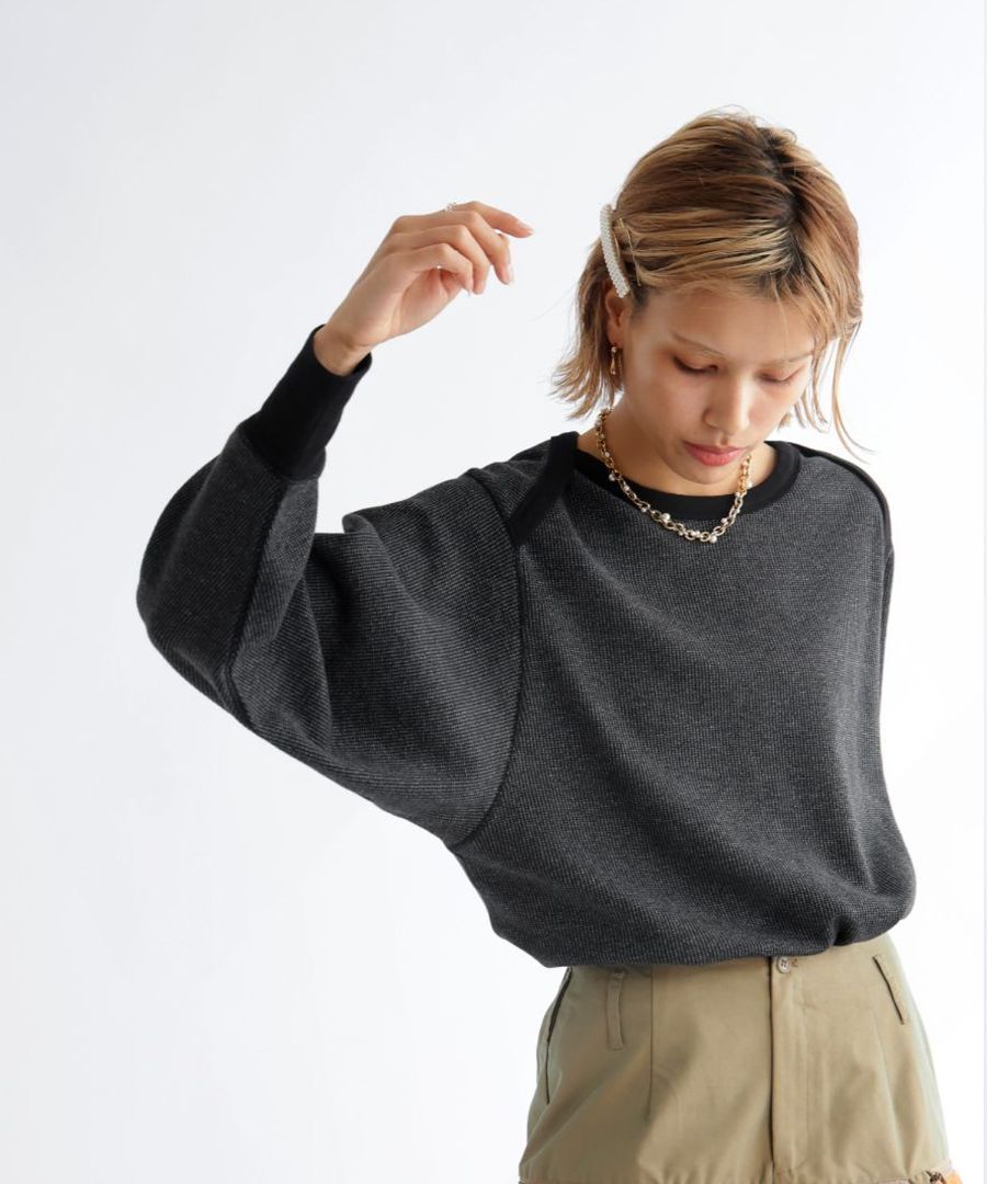 表面に凹凸のあるワッフル編みの生地を使用し、綿混ならではの柔らかな風合いと軽やかな着心地を実現。