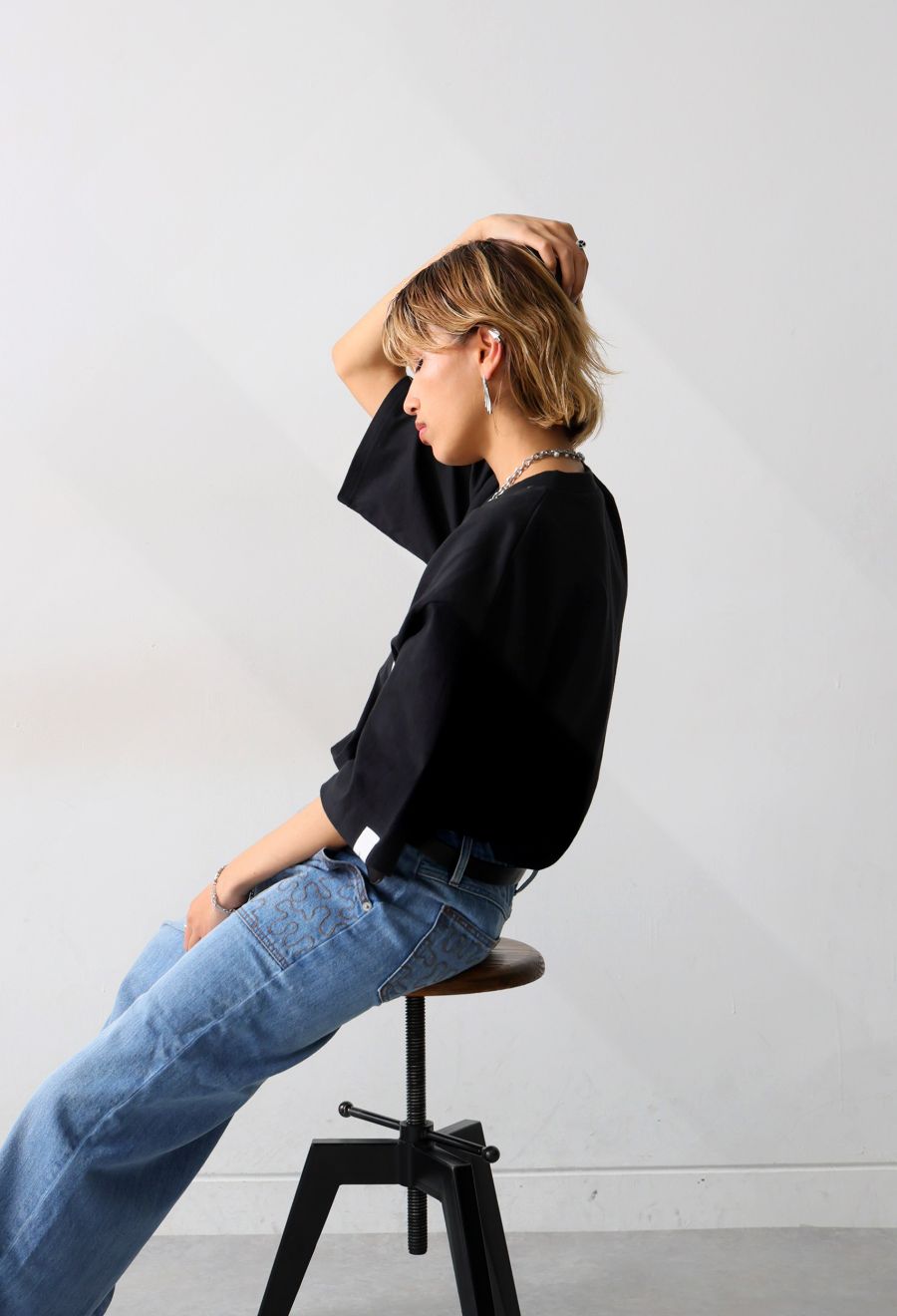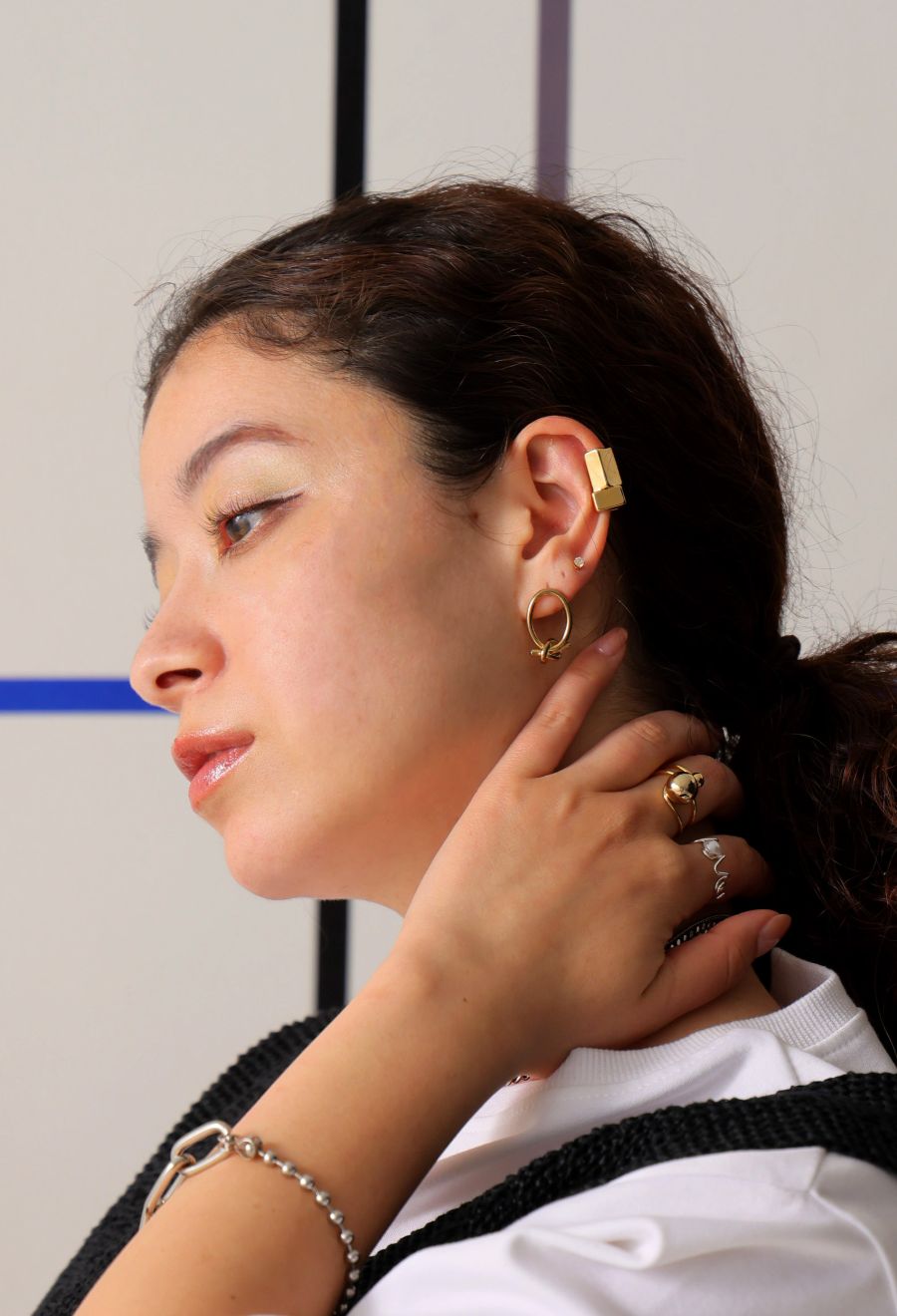 シンプルな中にも個性が光るメタルデザインで、耳元に上品なモード感をプラス。