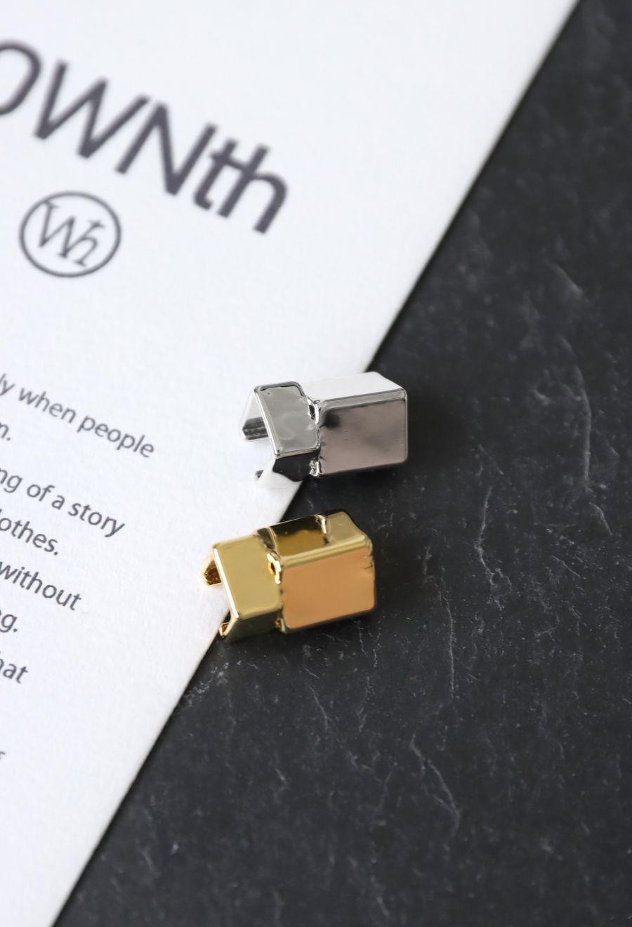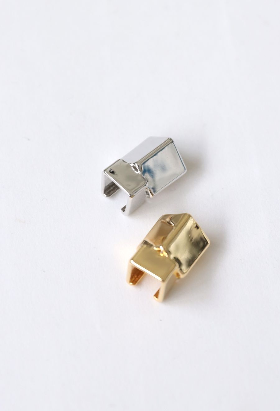 シャープなラインが印象的な立体キューブモチーフのイヤーカフ。