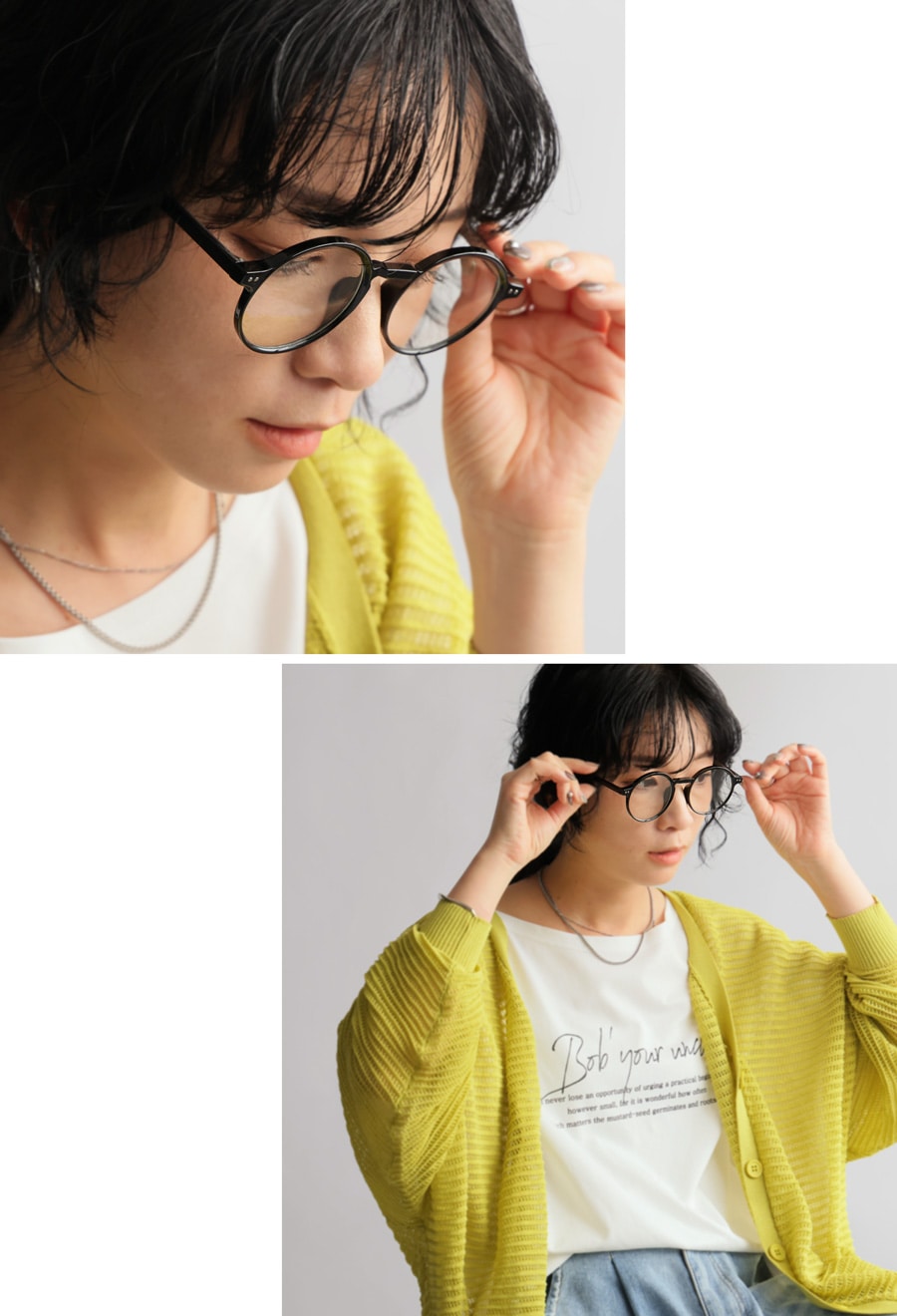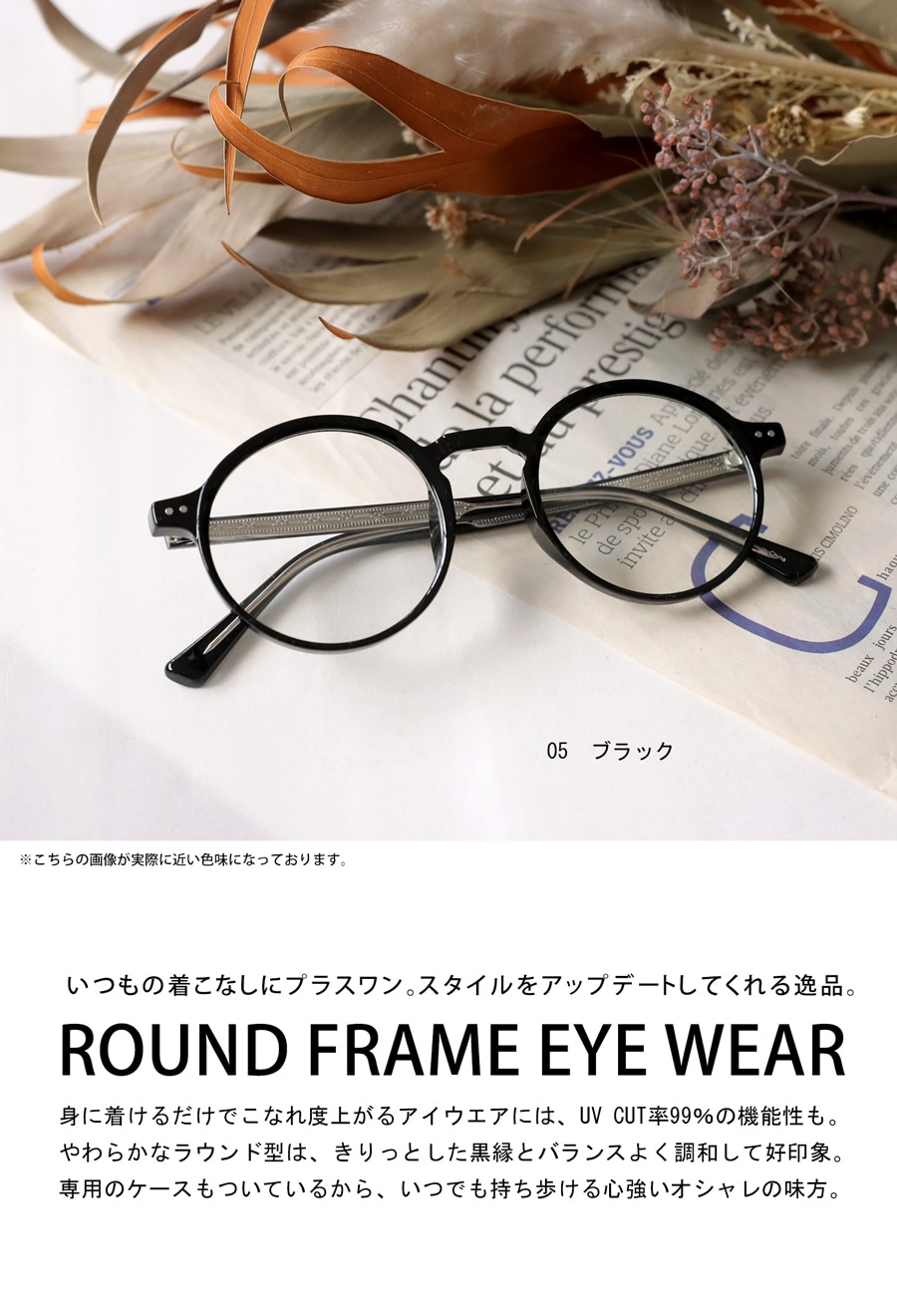 きりっとした黒縁と柔らかなラウンドフレームが好印象な逸品。
