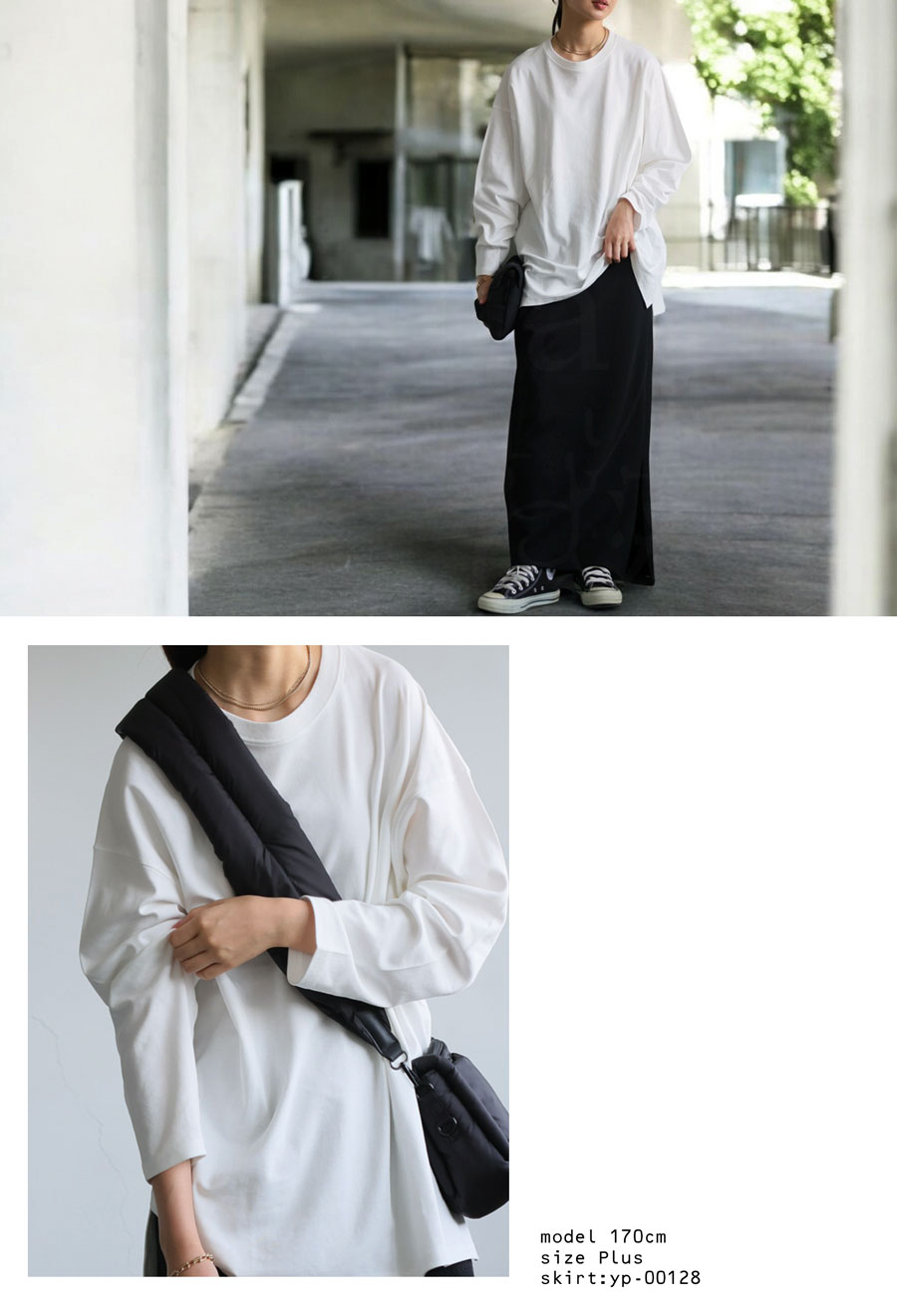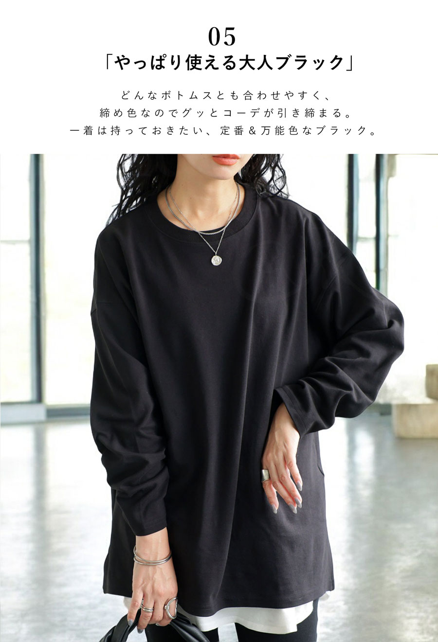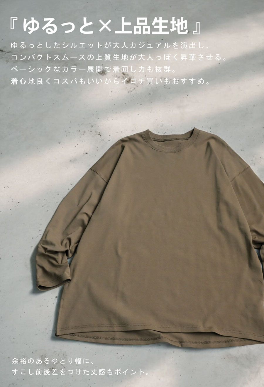 ゆるっとしたシルエットが、大人カジュアルを演出してくれるシンプルなロンT。