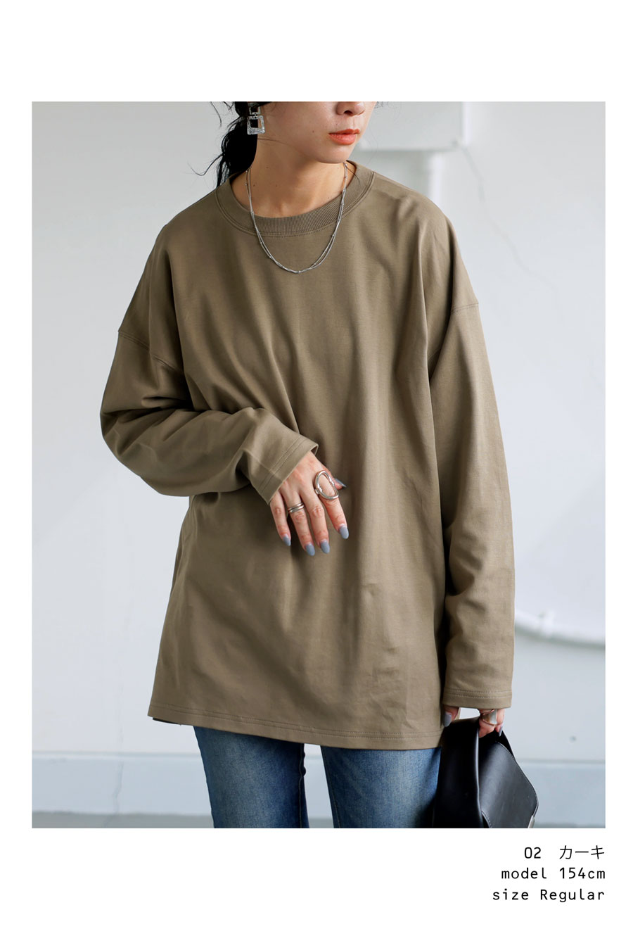 【検索ワード】ロンT ロングTシャツ レディース トップス 長袖 無地 丸首 クルーネック 綿100 シンプル コンパクトスムース カットソー Tシャツ プルオーバー インナー 重ね着 レイヤード ゆったり サイズ展開 Regular Plus 綿 コットン ビッグT ビッグシルエット 大きめ 大きいサイズ レイヤードインナー ユニセックス antiqua treecafe アンティカ ツリーカフェ 大人 おしゃれ 10代 20代 30代 40代 50代 60代 秋 冬 お洒落 カジュアル かわいい かっこいい あんてぃか