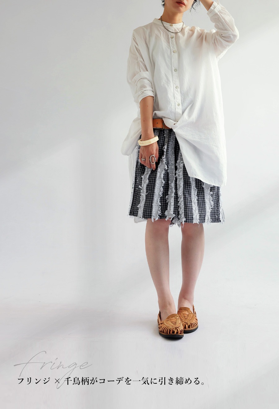 唯一無二のフリンジ×千鳥柄。