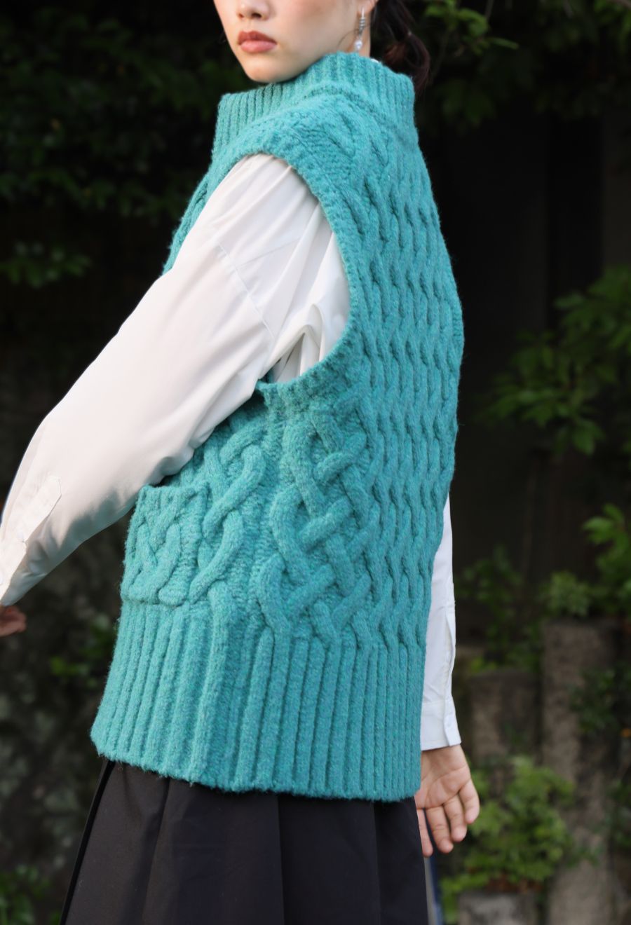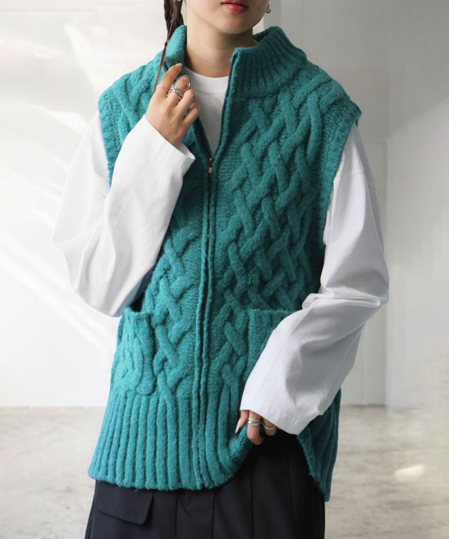籠編み風ニットベスト ユニセックス ハイネック ベスト 送料無料・メール便不可