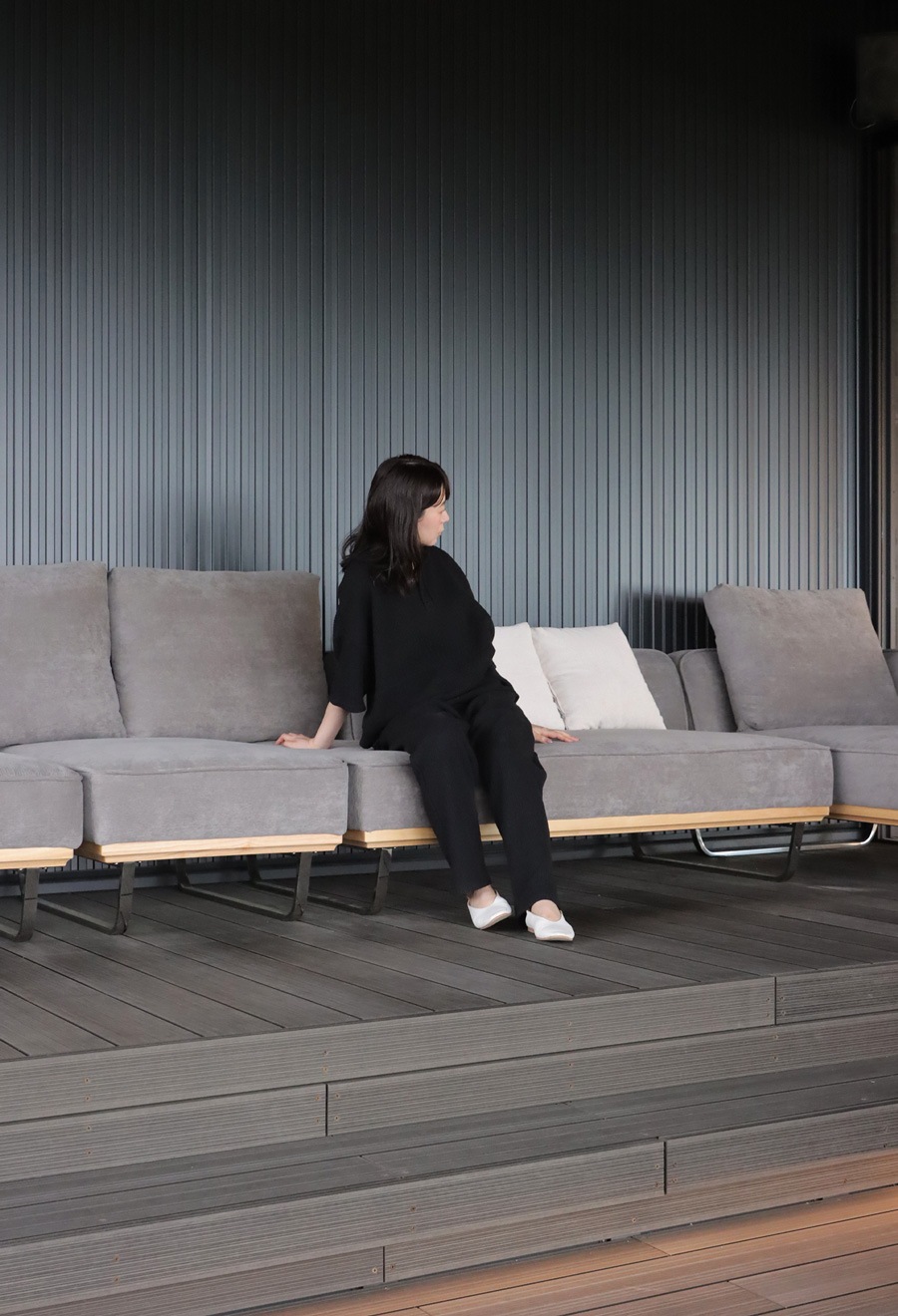 ・こなれ感のあるドロップショルダー。