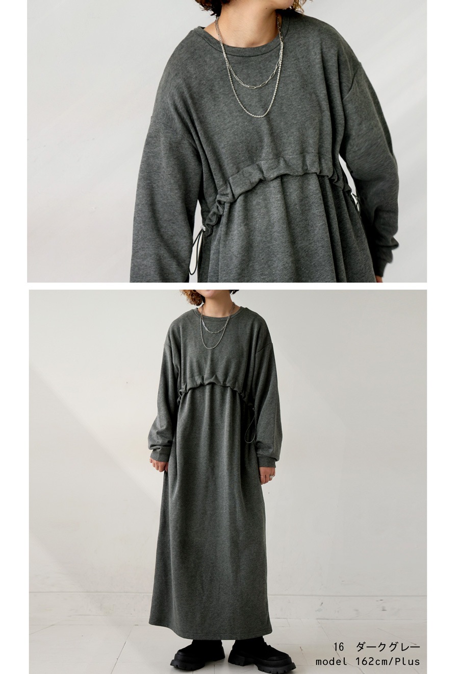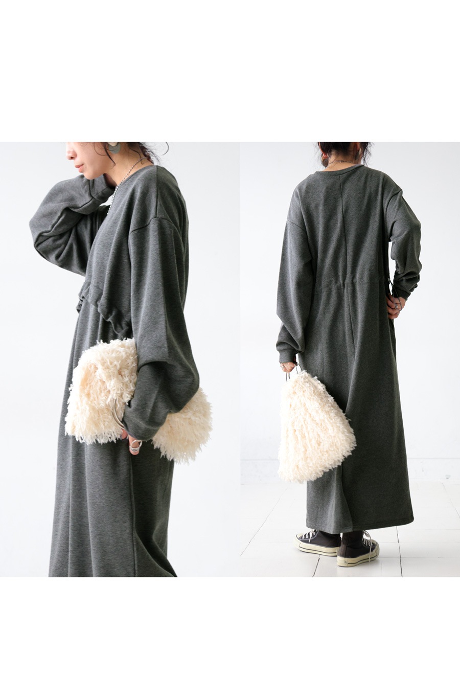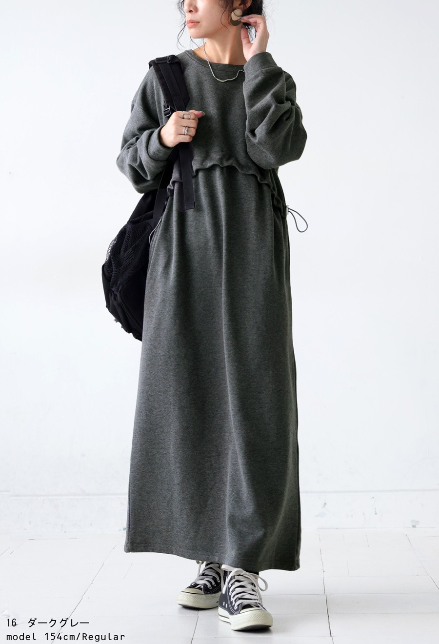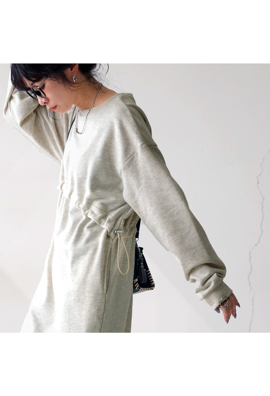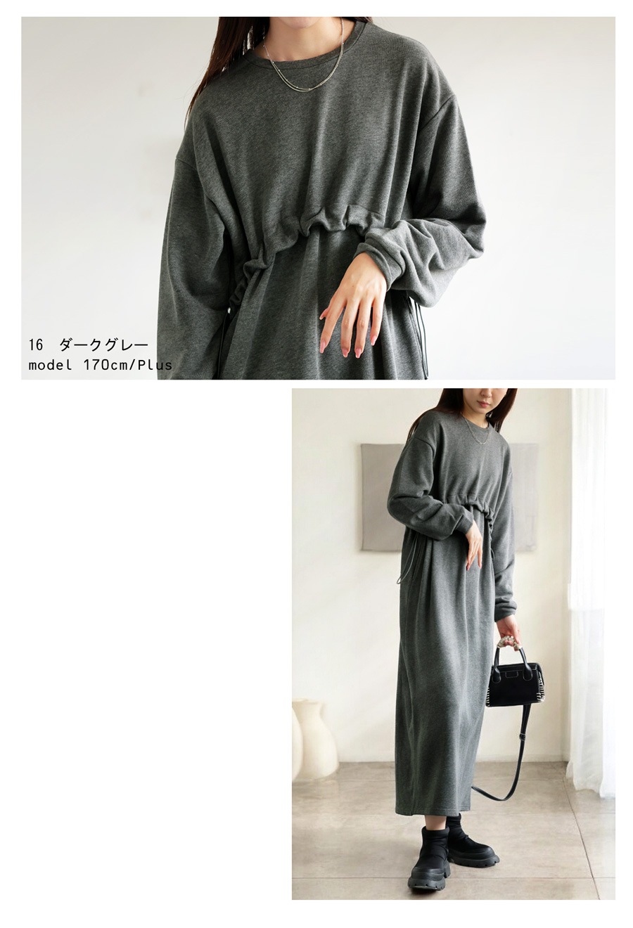 大人可愛い雰囲気生む『ドロスト付き裏毛ワンピース』