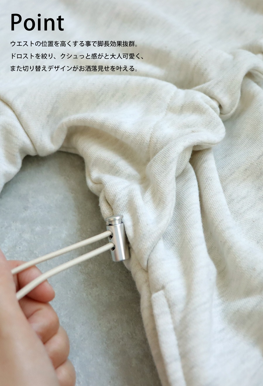 ・脚長効果のある高めのウエスト位置。