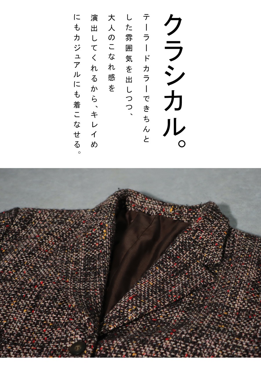 ・クラシカルなテーラードカラー。
