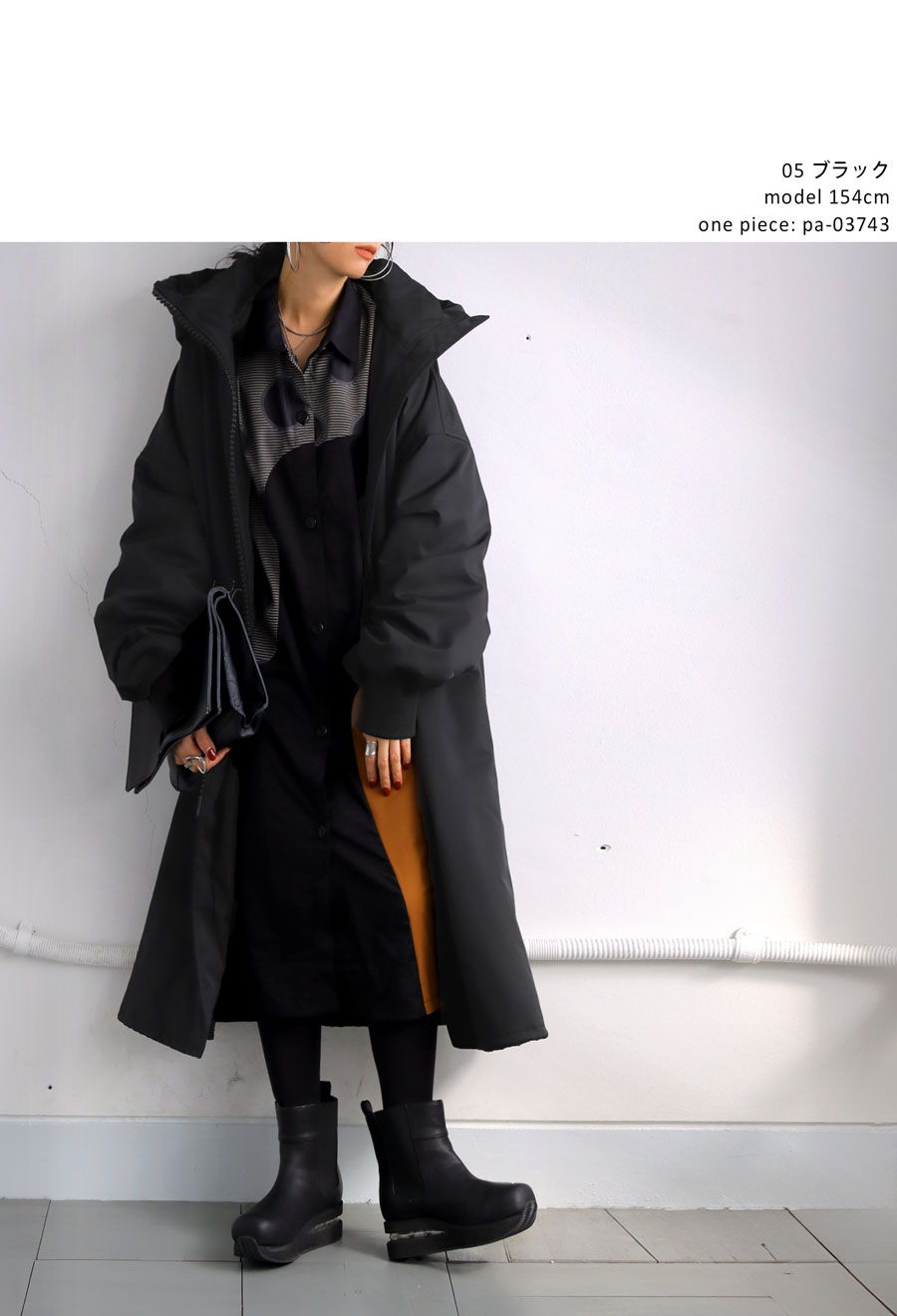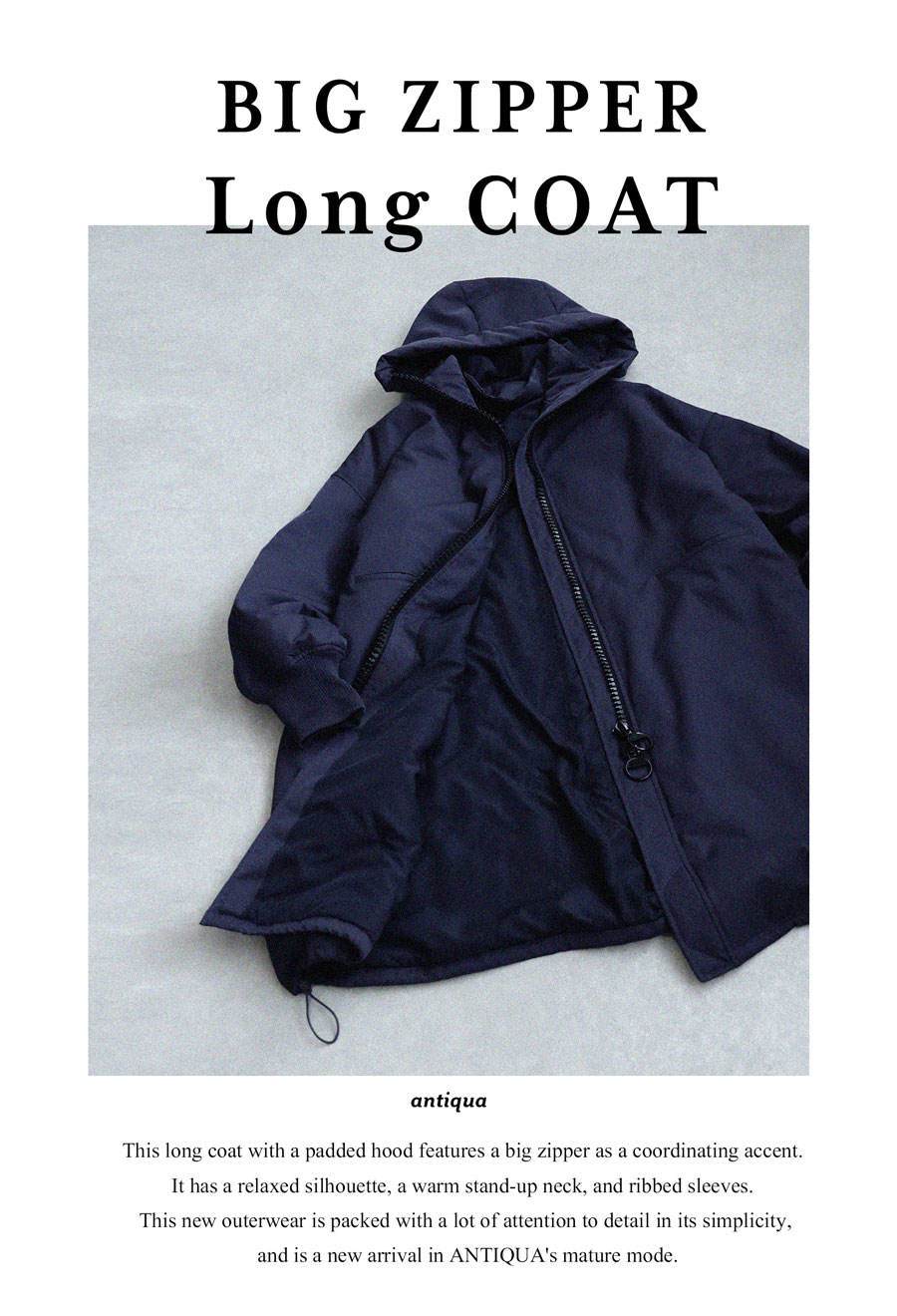 ビッグファスナーが目を引く中綿ロングコートが、大人モードな装いを格上げ。