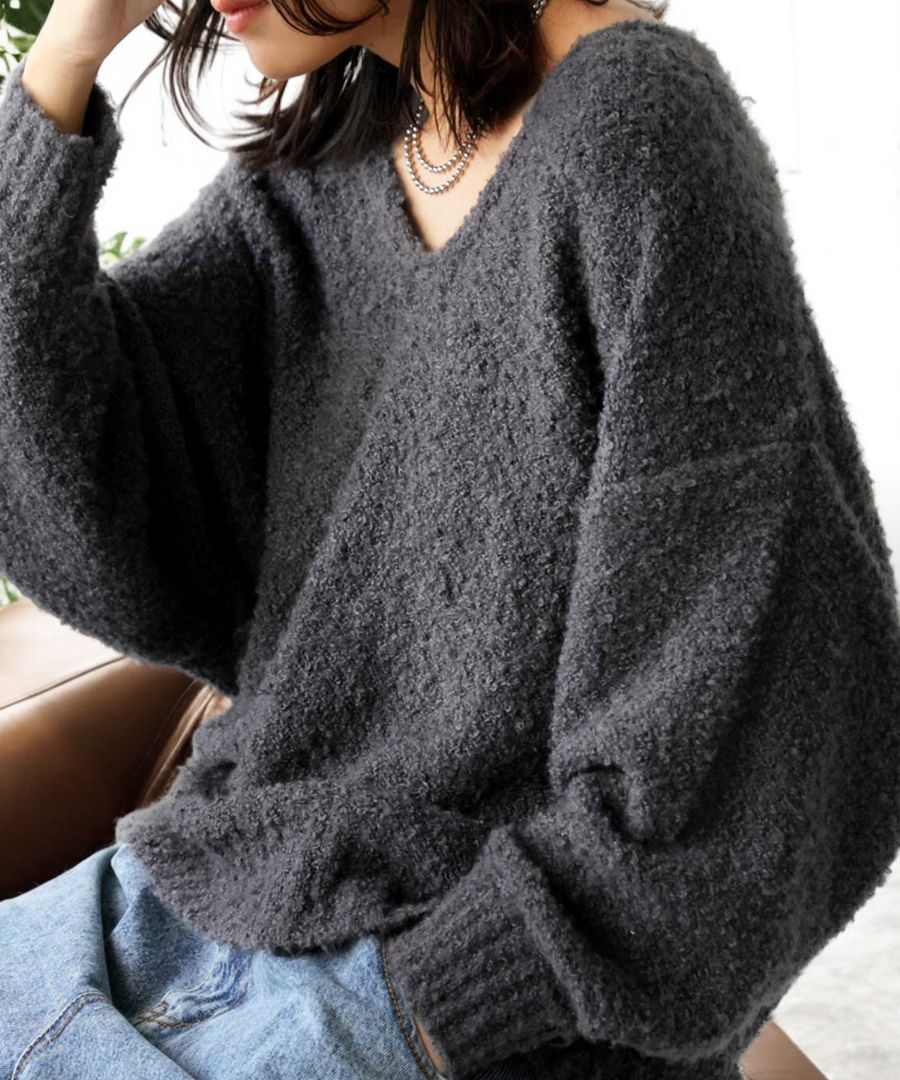 【検索ワード】Vネックニット ニット レディース トップス 長袖 無地 ブークレヤーン ブークレ Vネック 深め レイヤード 重ね着 ドルマン ドルマンシルエット プルオーバー かぶり ゆったり シンプル きれいめ 上品 高級感 ナチュラル 暖かい あったか ざっくり 体型カバー 細見え 着痩せ 大きめ 大きいサイズ ニットトップス セーター antiqua アンティカ 大人 おしゃれ 10代 20代 30代 40代 50代 60代 春 夏 秋 冬 オールシーズン お洒落 カジュアル かわいい かっこいい あんてぃか