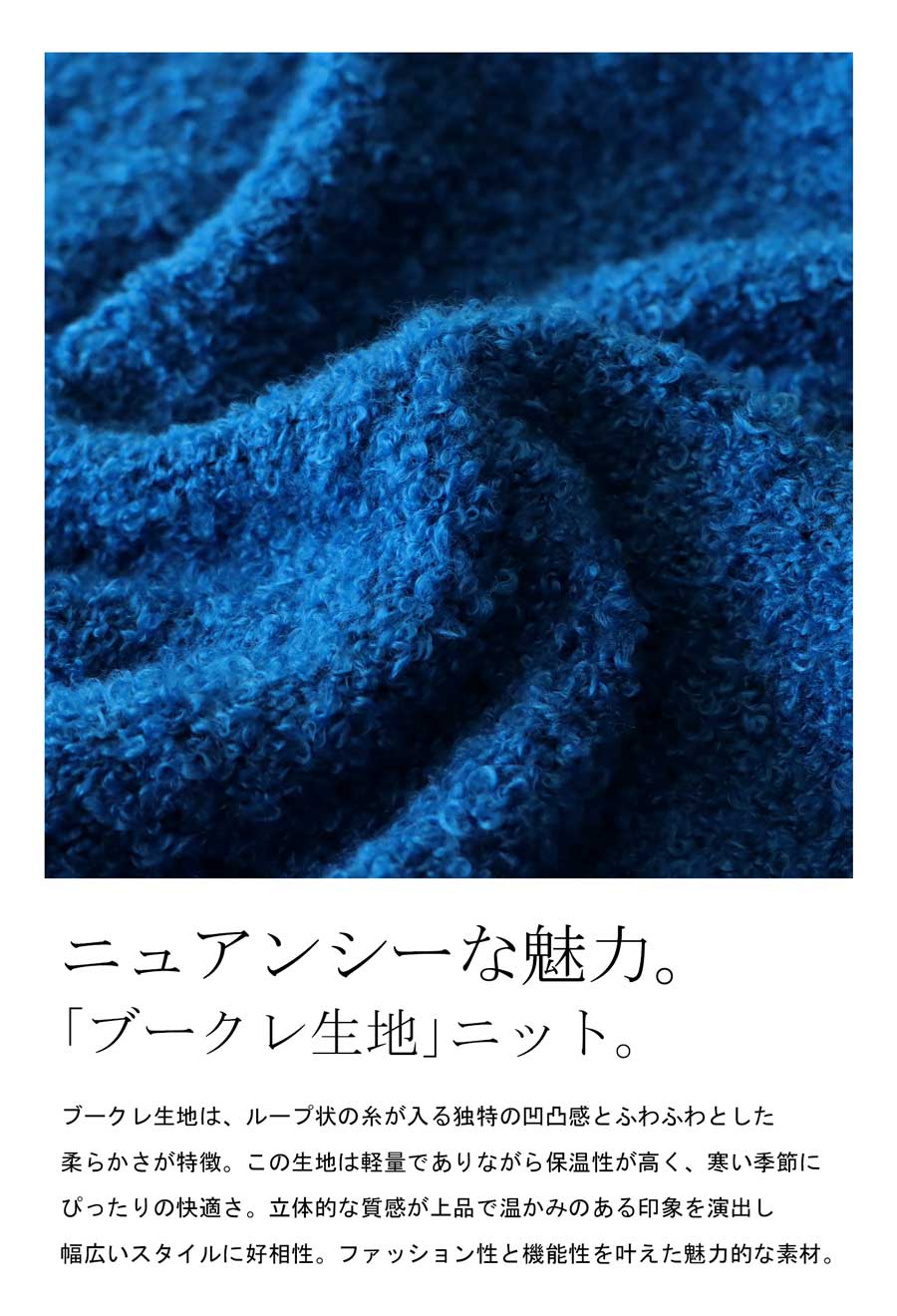 デザイン性と機能性を兼ね備えた魅力的なブークレ生地ニット。