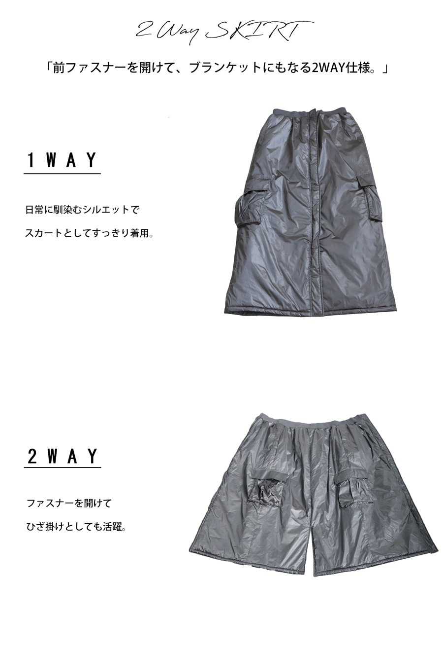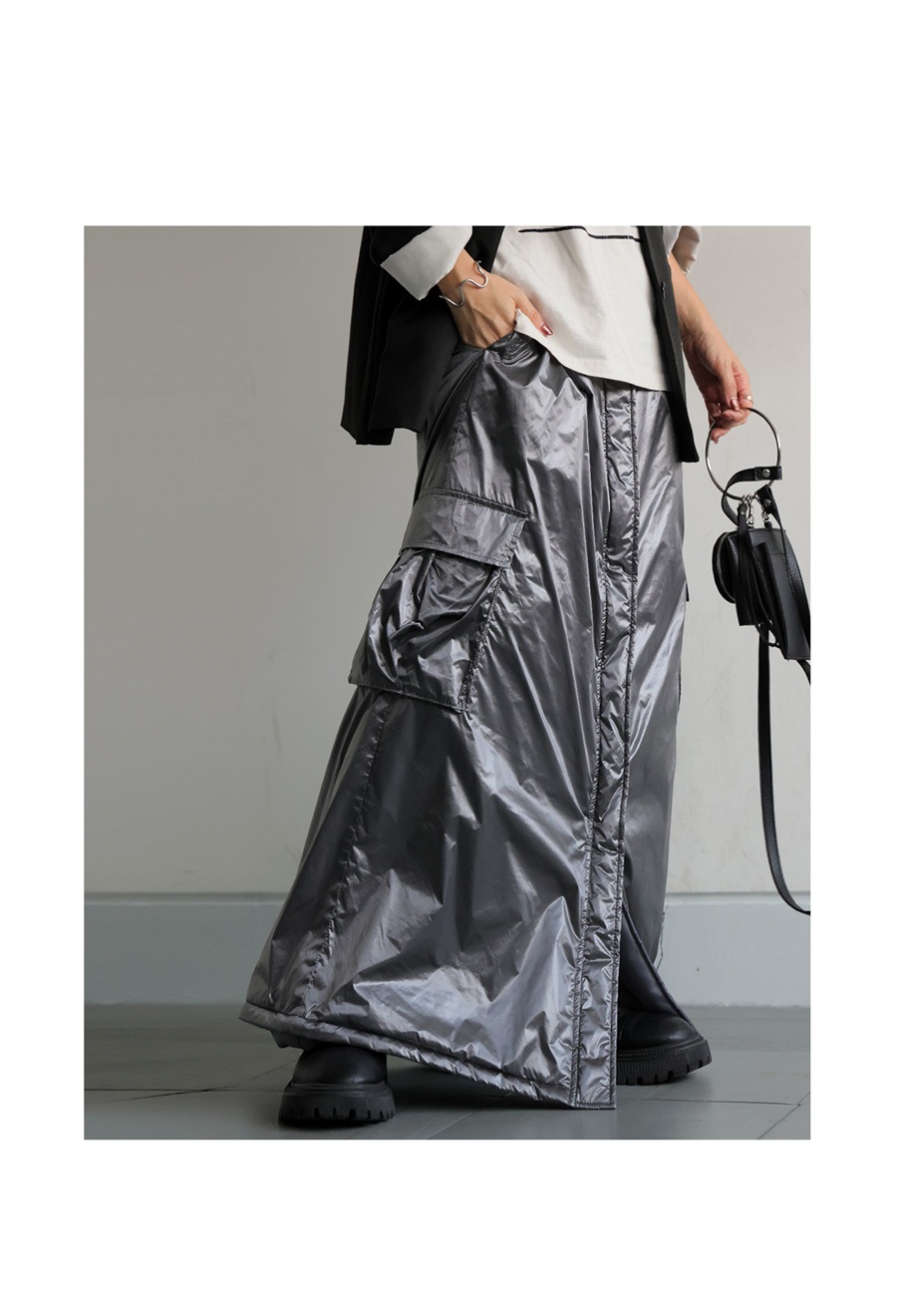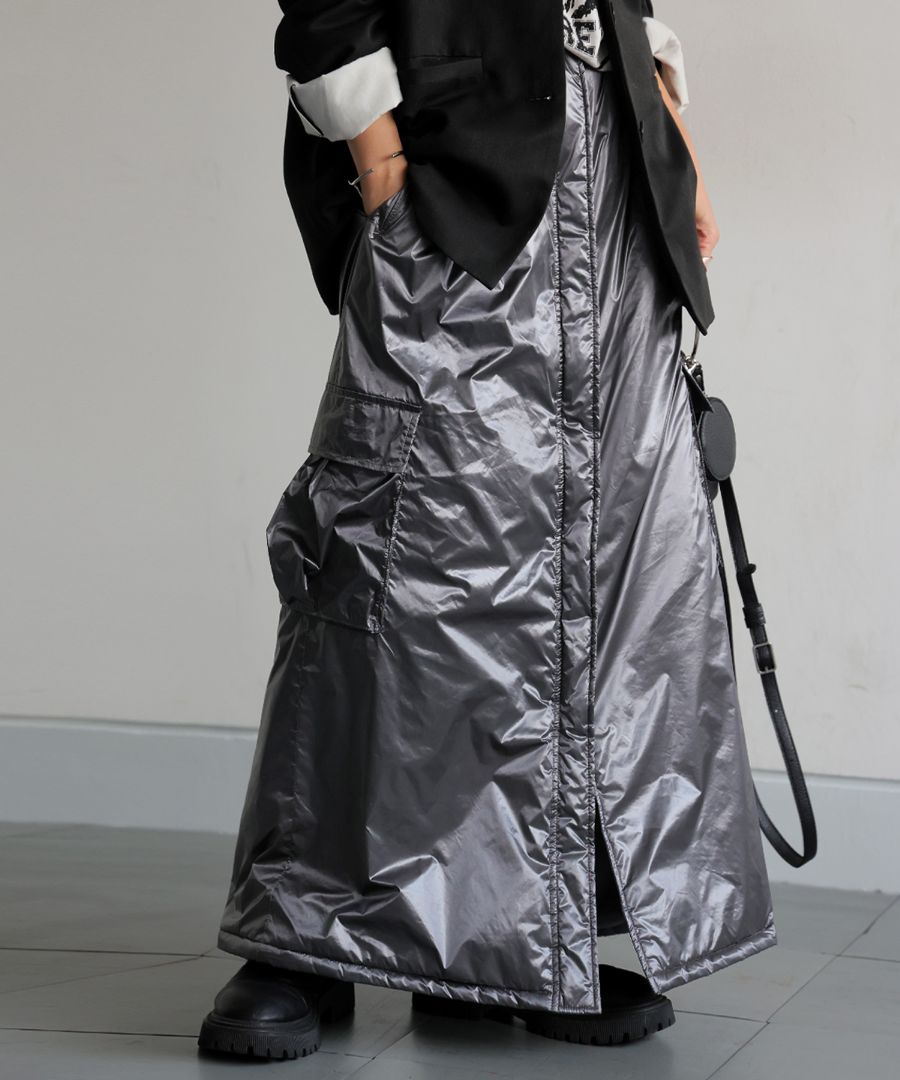 中綿入りで防寒性と防風性に優れたロングスカートです。