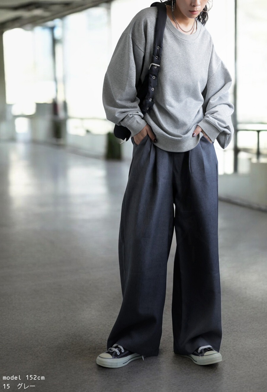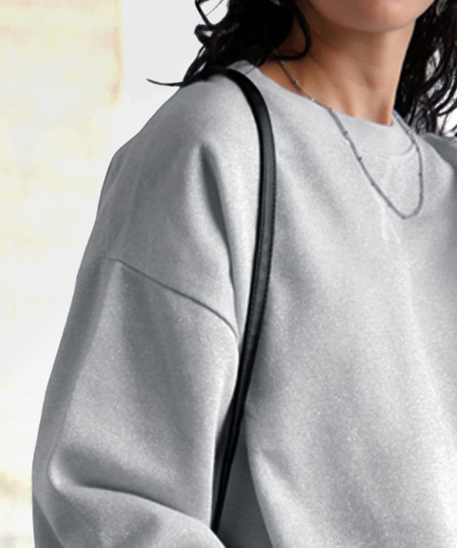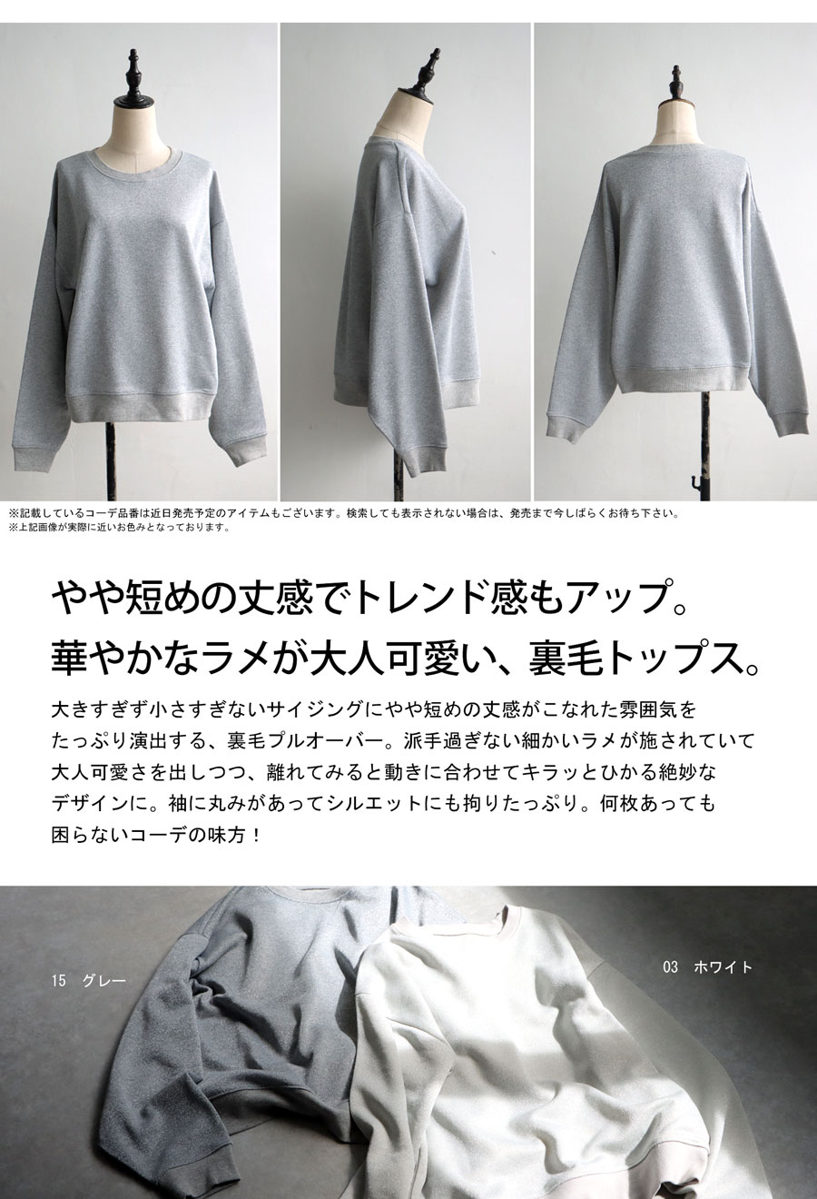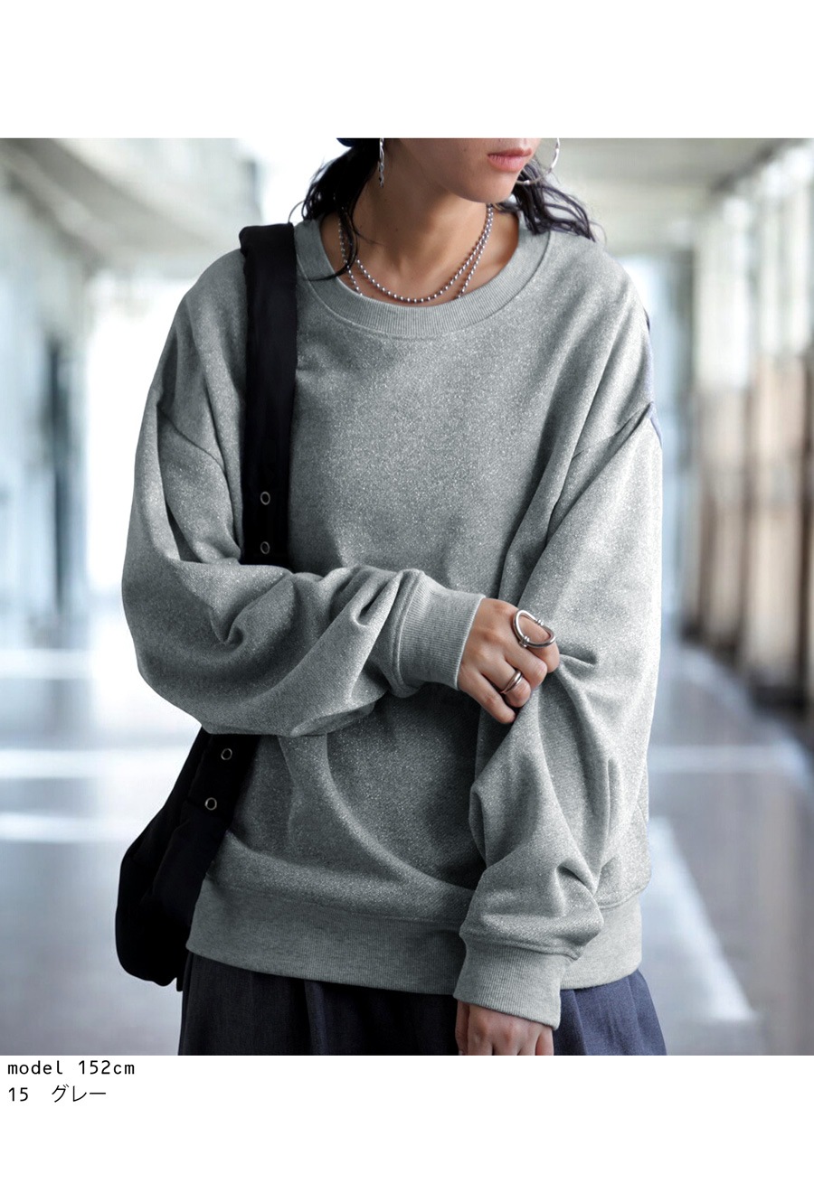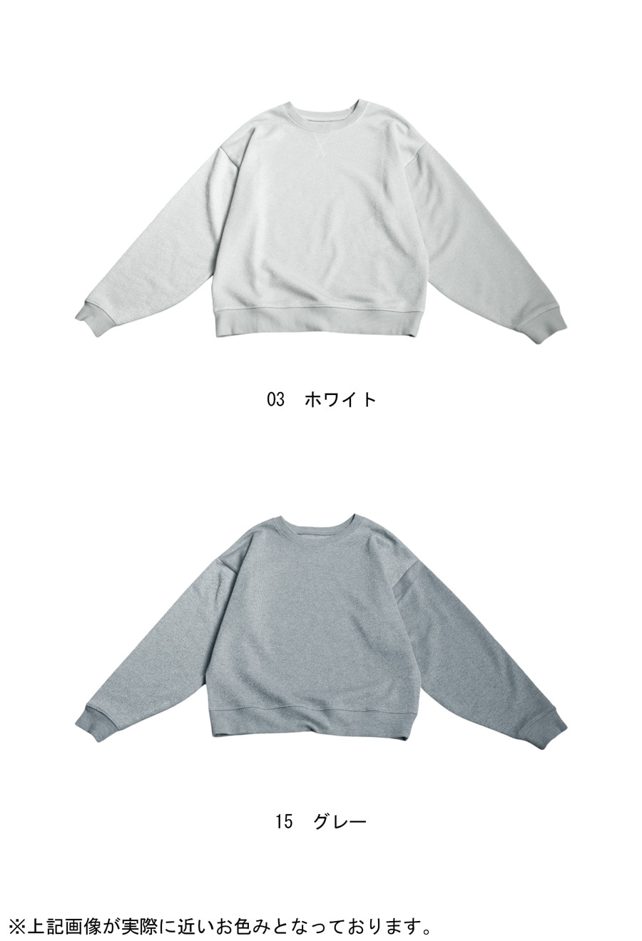 動きに合わせてキラッと光るラメが上品な印象の裏毛トップス。