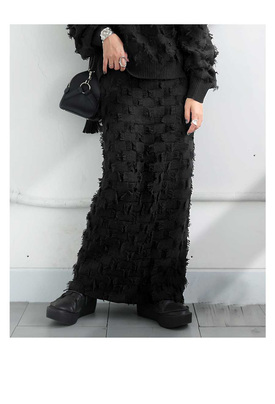 個性光る『チェックフリンジニットスカート』